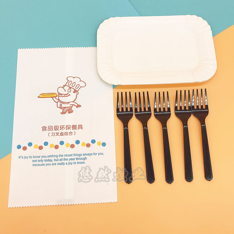 5 длинная тарелка + 5 черная вилка, два в одном, 400 наборов/коробка