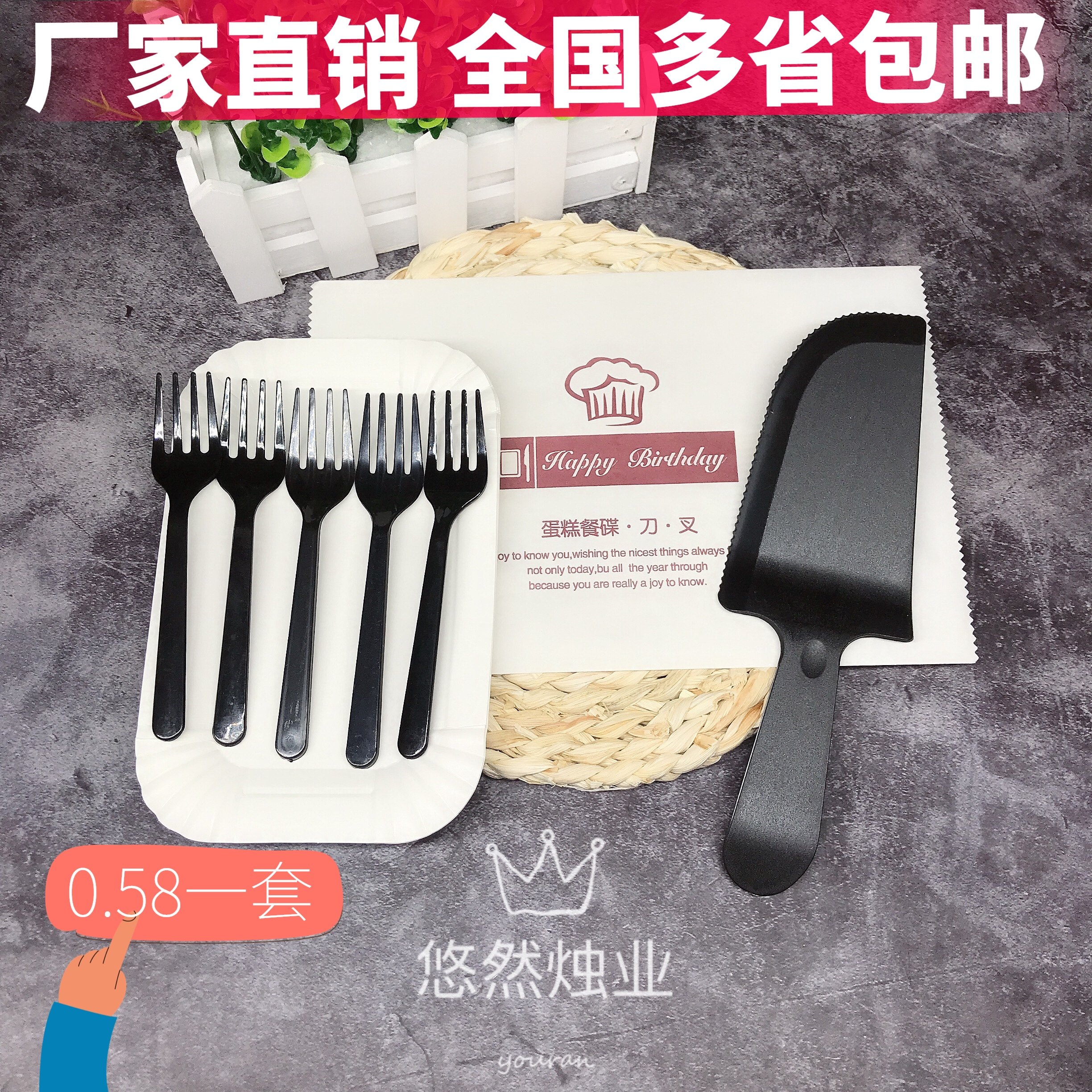 5 длинная тарелка + 5 черная вилка + 1 черный нож, набор из трех частей, 400 наборов/коробка, Рекомендуется магазиномСущность