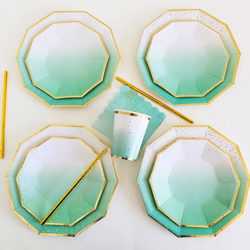 Десерт -посуда одноразовая бумажная ножи и вилка наборы пикника для барбекю для барбекю День рождения торт зеленый тарелка