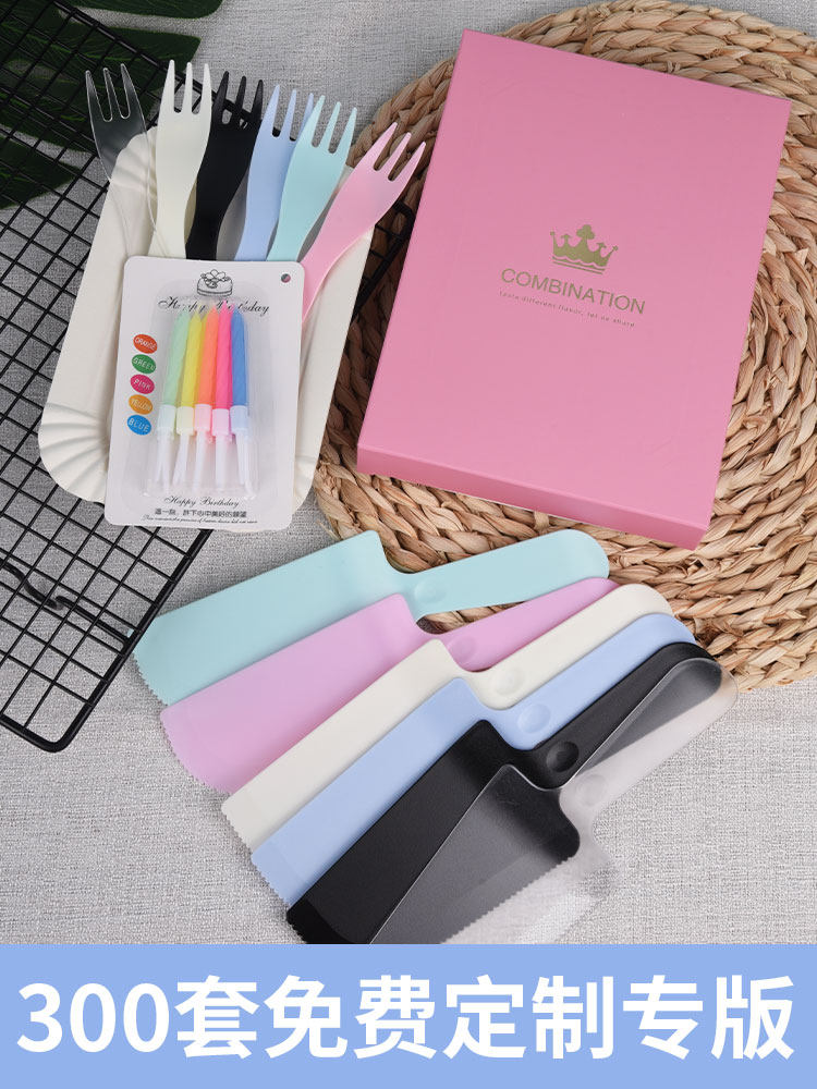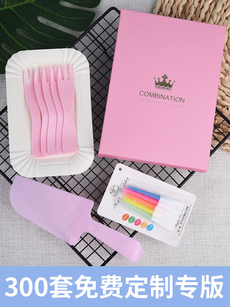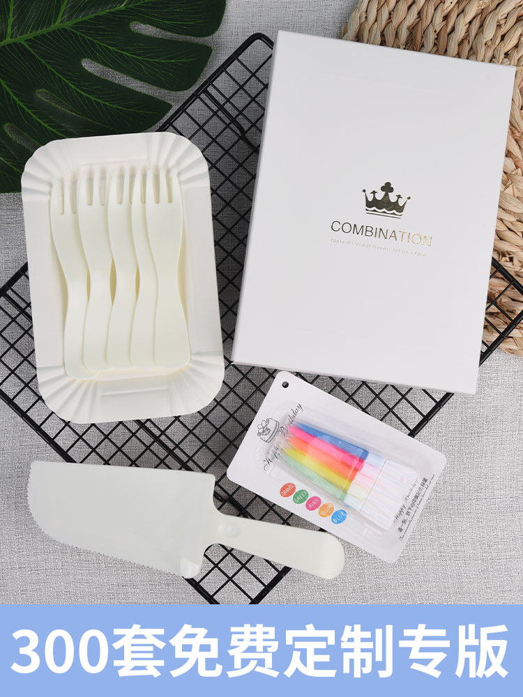 Торт пирог, нож -вилка, бумажная поддона для посуды тарелка диска для поддона бумага для поддона к дне рождения набор посуда набор защиты окружающей среды Одноразовая