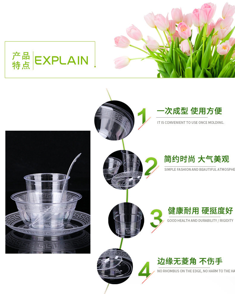 Одноразовая посуда, экологичный высококлассный пластиковый комплект для домашнего использования, 4 предмета