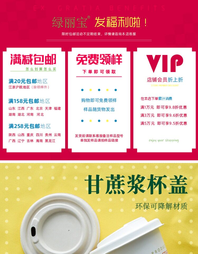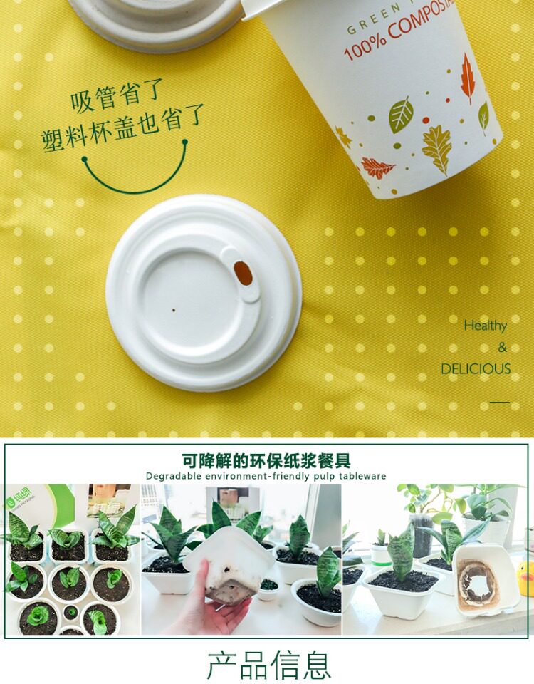 绿丽宝 Одноразовая бумажная чашка крышка сахарного тростника может ухудшить экологически чистую крышку и толстую крышку чашки 100