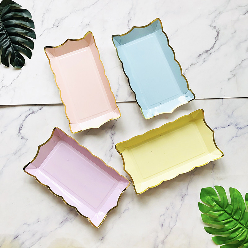 [食品级生日蛋糕盘一次性餐盘甜品台托盘野餐烧烤盘子长方形四只装]