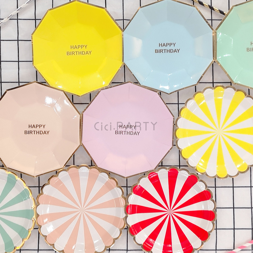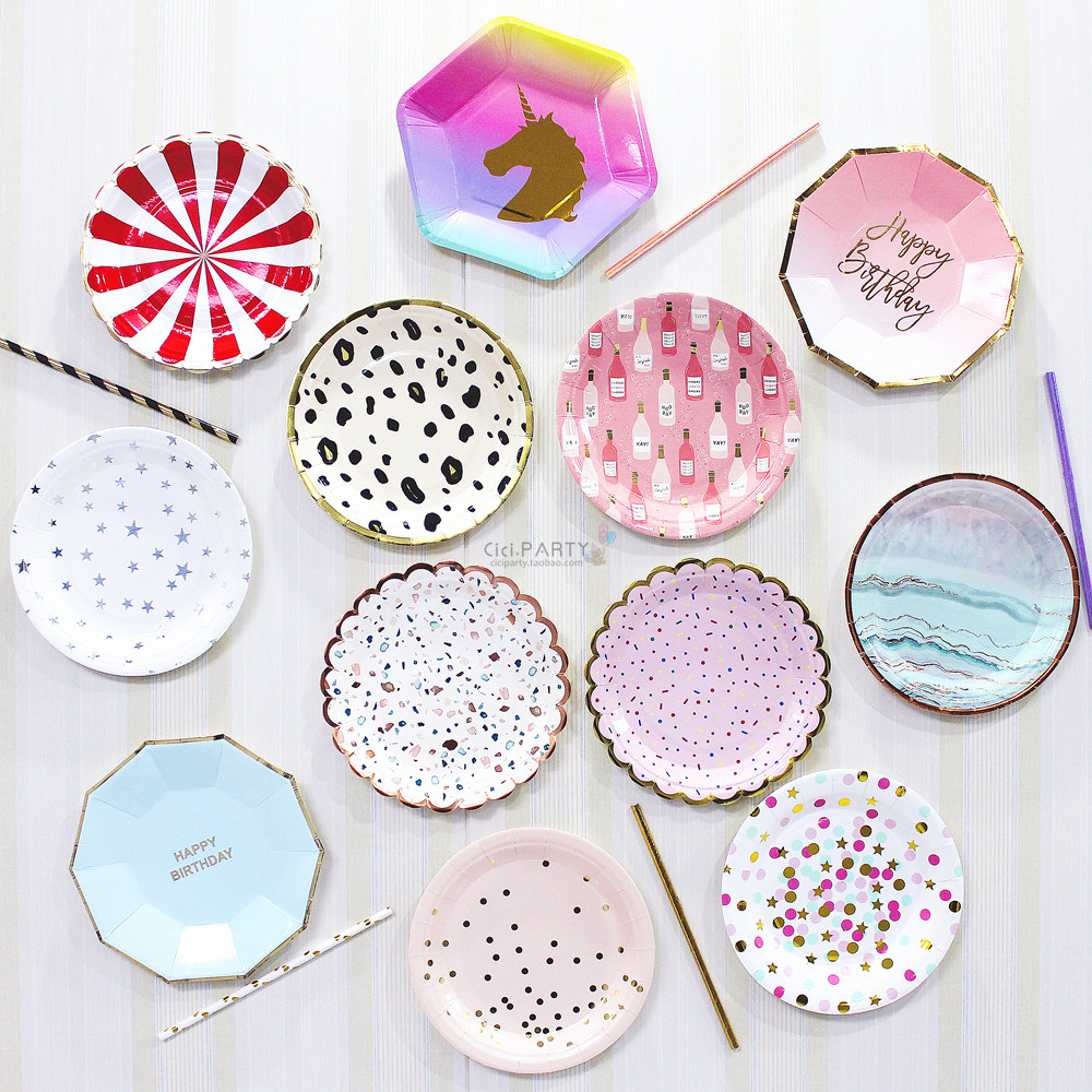 Бумажная тарелка для горячего тиснения, одноразовая обеденная тарелка с принтом, бумажная тарелка для торта, украшение для дня рождения, ресторана, пикника, красочная посуда