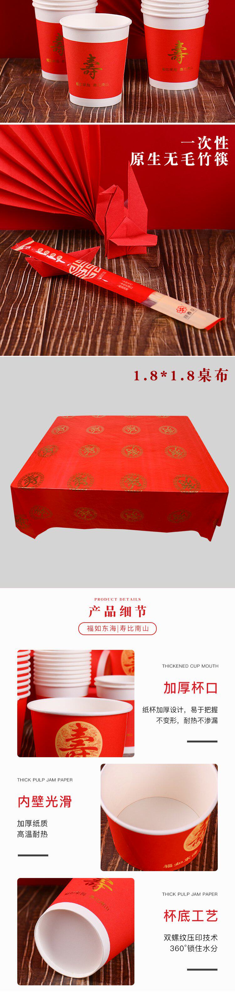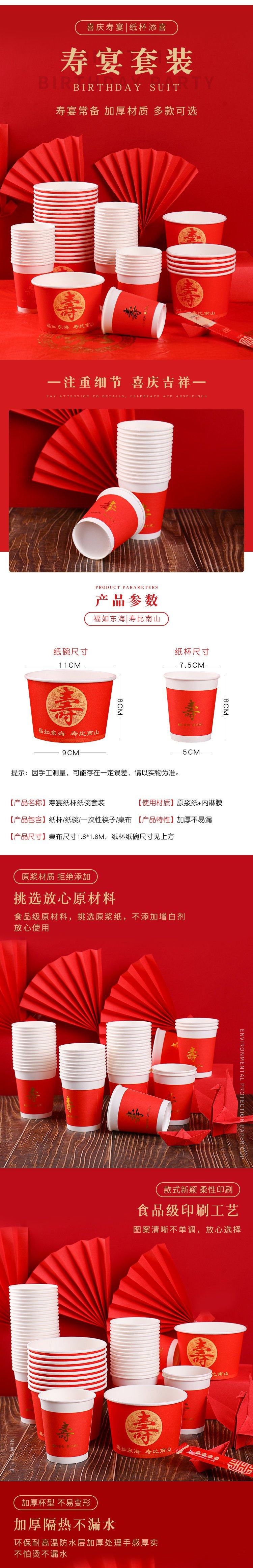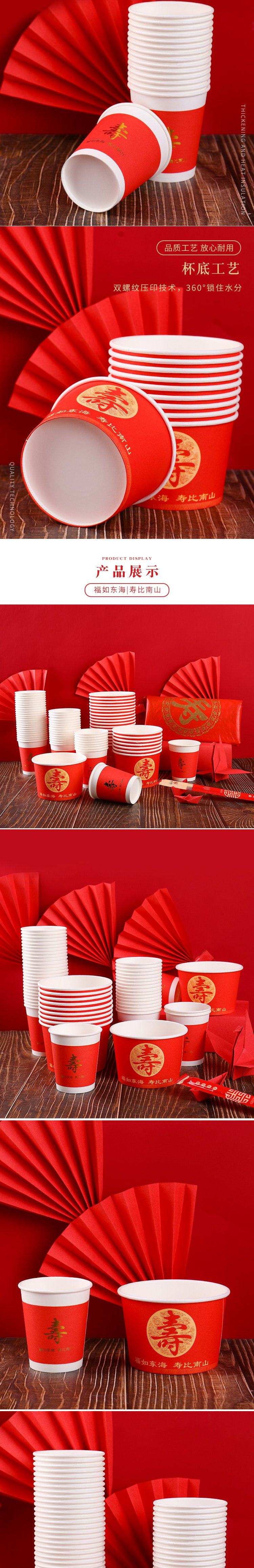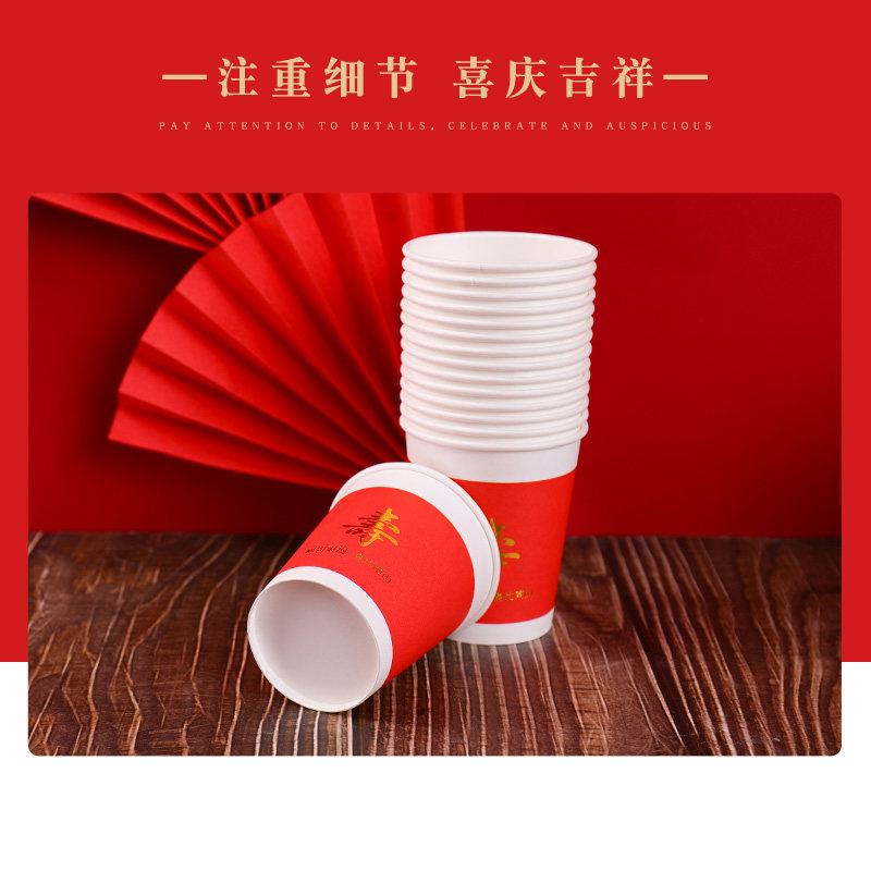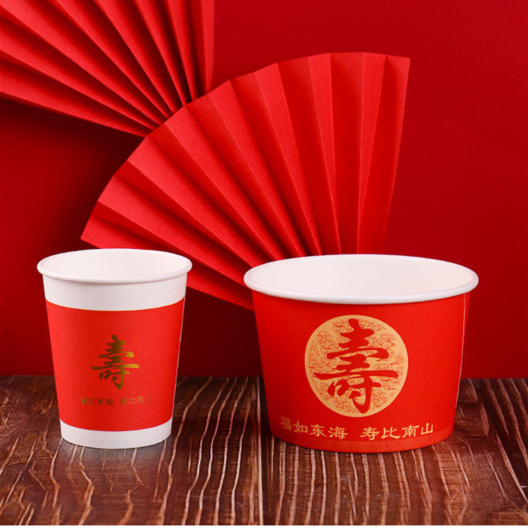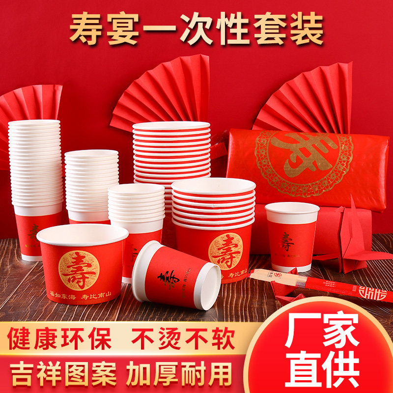 Одноразовая жизнь банкетная бумага чаша красная утолщенная благословение персонаж бумажные чашки палочки для еды, палочки для еды, скатерть гостиница Семейная чашка чая