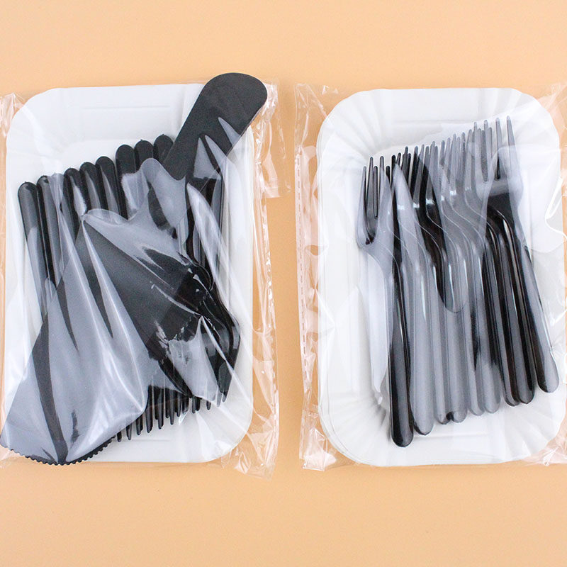 Одноразовая черная посуда, прозрачный прямоугольный комплект, «три в одном»