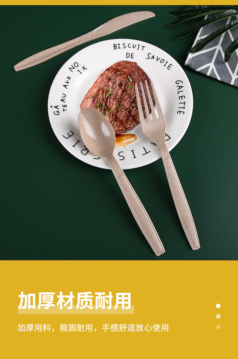 Одноразовая ложка пшеничного волокна, ножа вилки палочки для палочки для палаты с толстой суп -рисовой ложкой для установки набор ложек на вынос для вывода