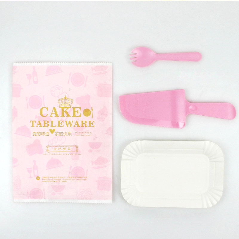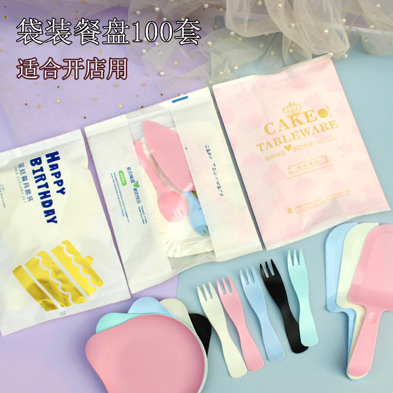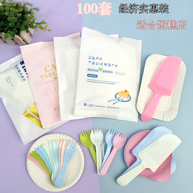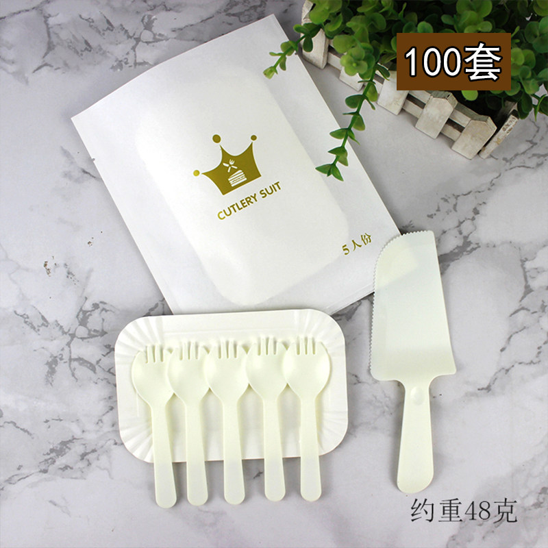 100 комплектов запеченного торта Форк -вилка вилка тарелка тарелка тарелка пластина на одноразовую бумажную лоток сочетание.