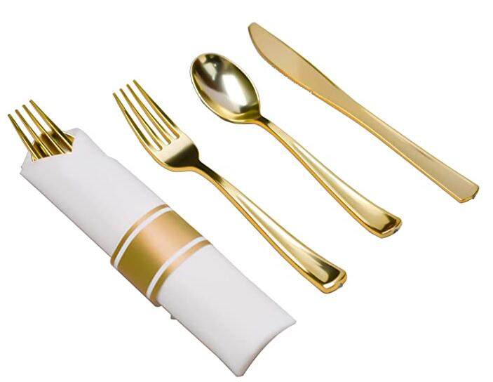 Одноразовые пластиковые золотые бумажные салфетки, комплект, посуда, Amazon, 3 предмета