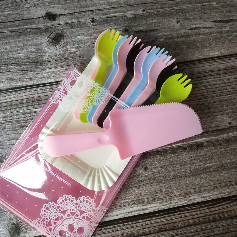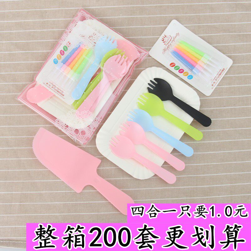 Сущность200 комплектов сырой дневной посуды для пирога одноразовый нож и вилка Комбинированная пластиковая столовая бумага бумажная пластина для свечи вилки