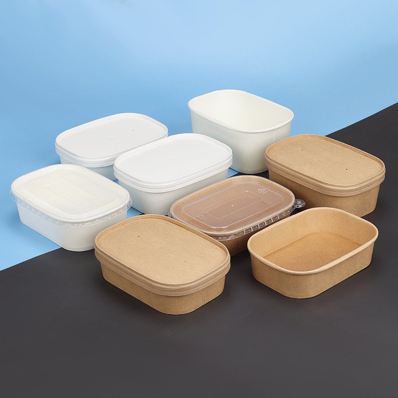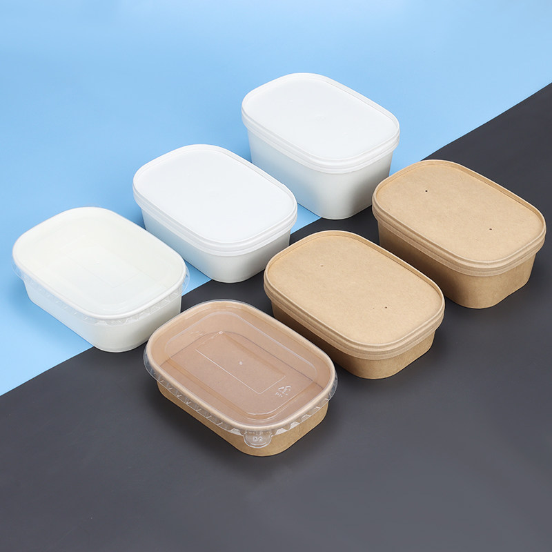 Одноразовая коробка для ланч-коробки Kraft Paper Lunch Box Прямоугольная чаша вынос Bento Fast Food Box Box White High-end Microwableable