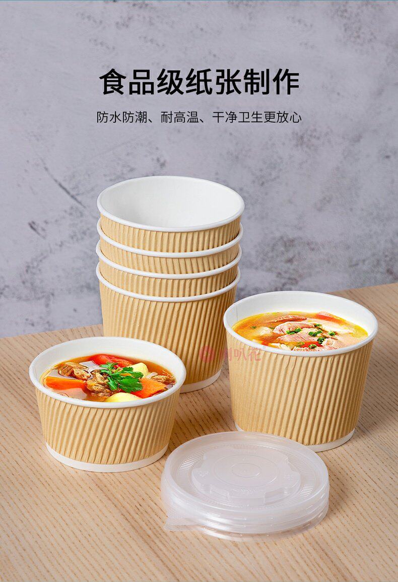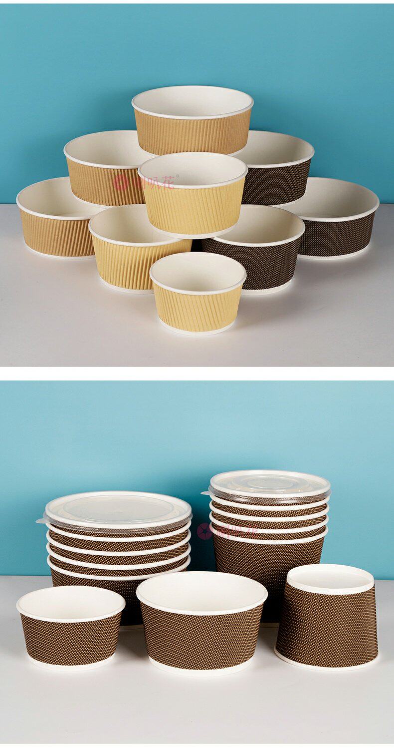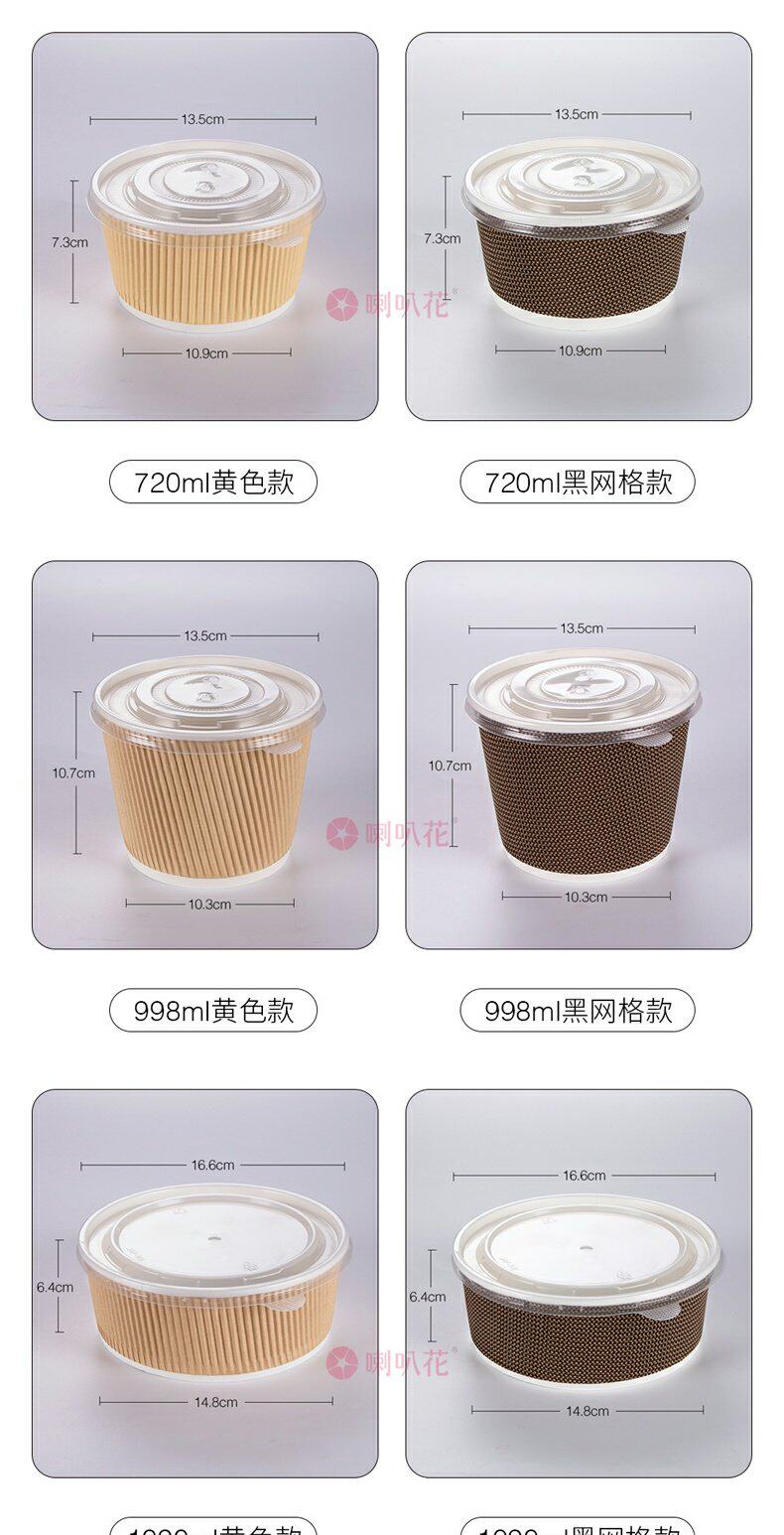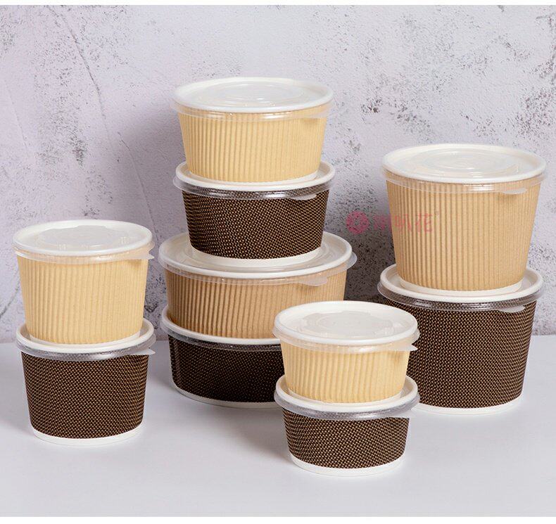 喇叭花 Одноразовая бумажная чаша из гофрированной бумажной чаши кара кара с бочкой круглое вынос суп десерт десерт упаковочная коробка с крышкой с крышкой