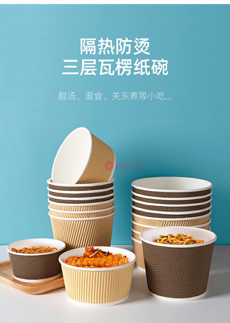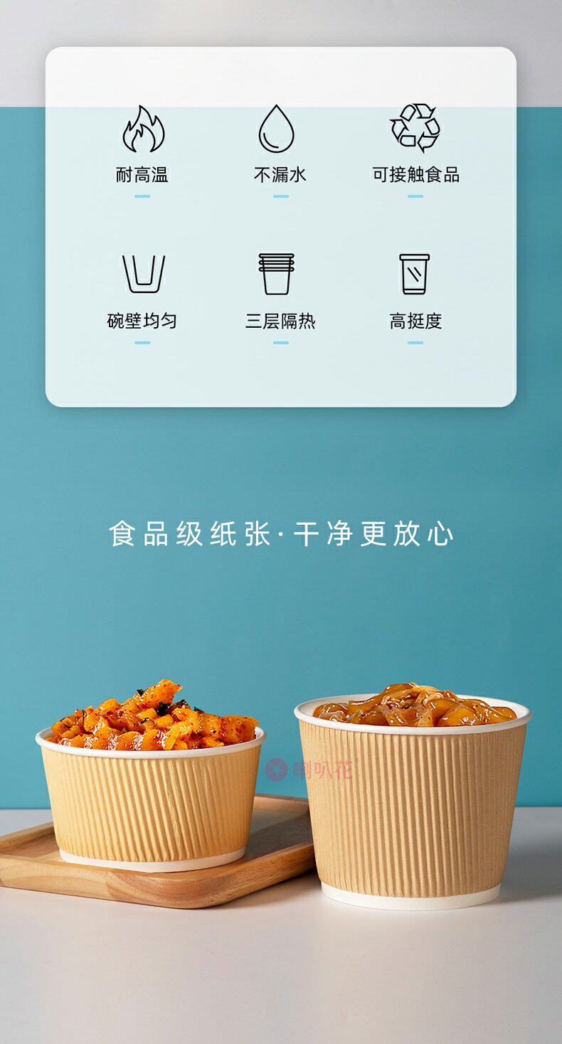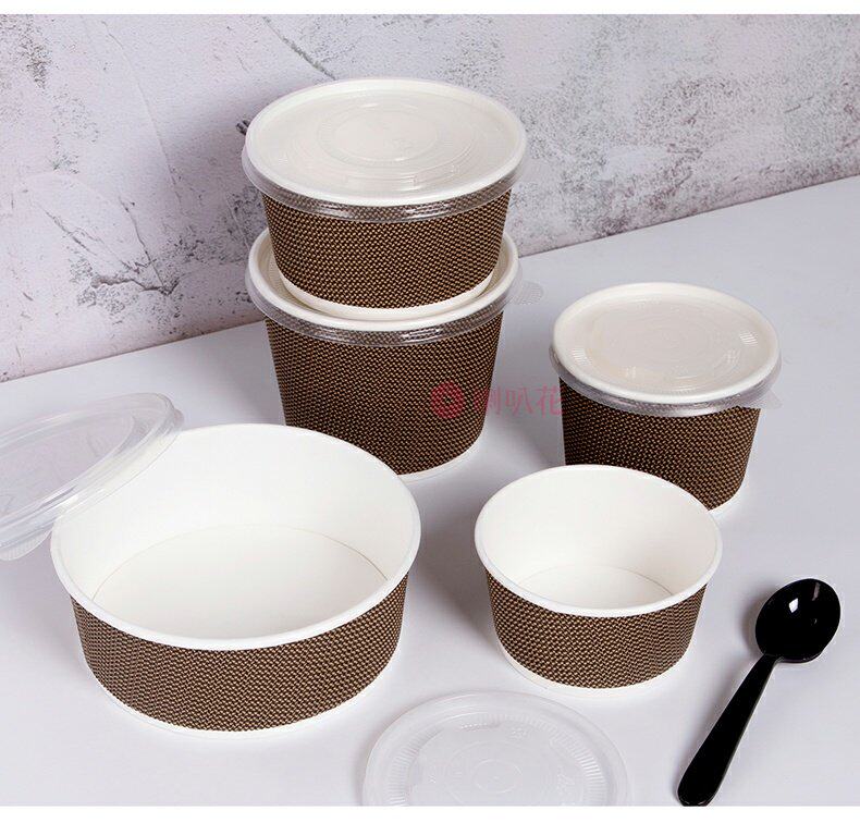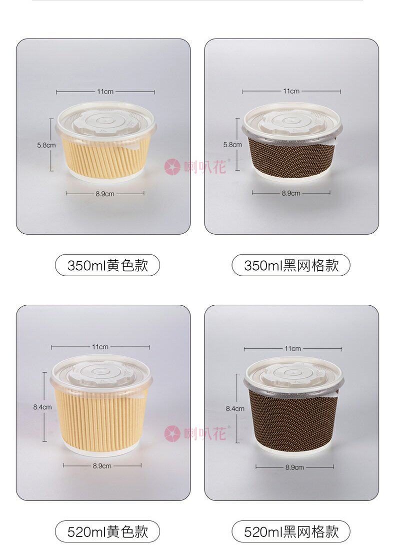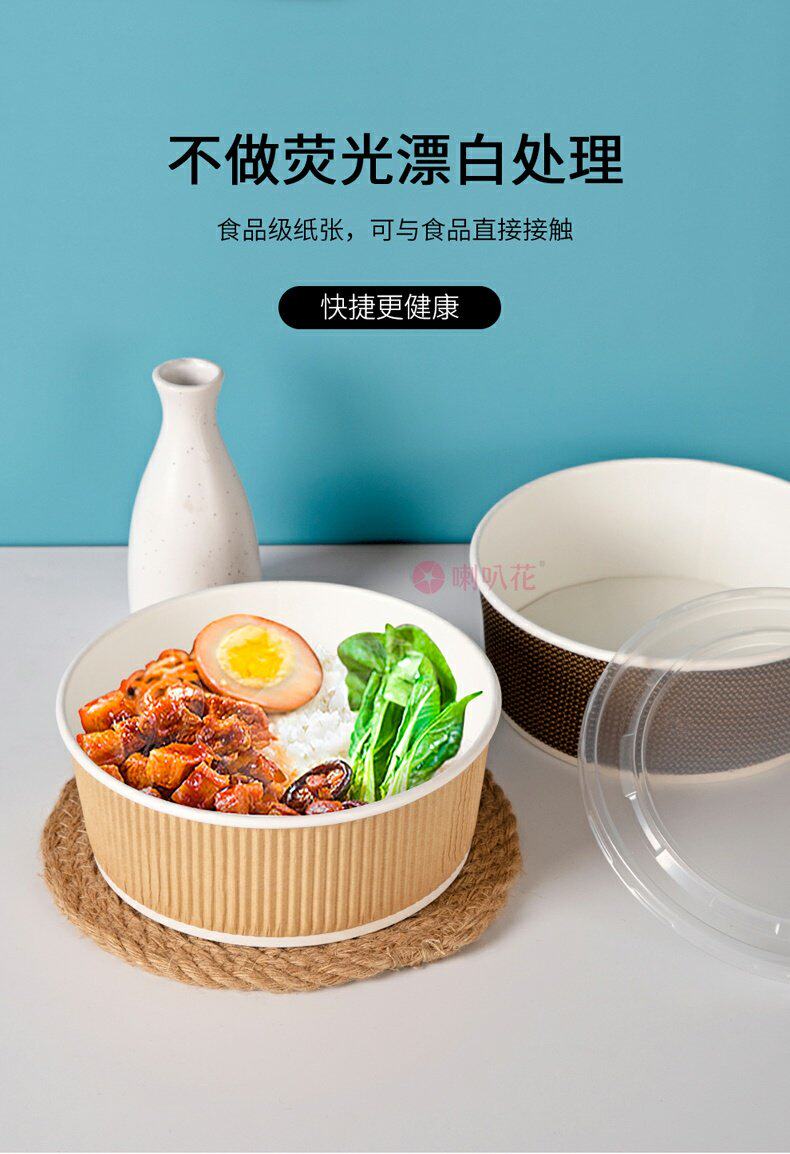 喇叭花 Одноразовая бумажная чаша из гофрированной бумажной чаши кара кара с бочкой круглое вынос суп десерт десерт упаковочная коробка с крышкой с крышкой