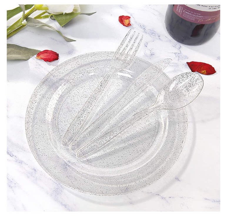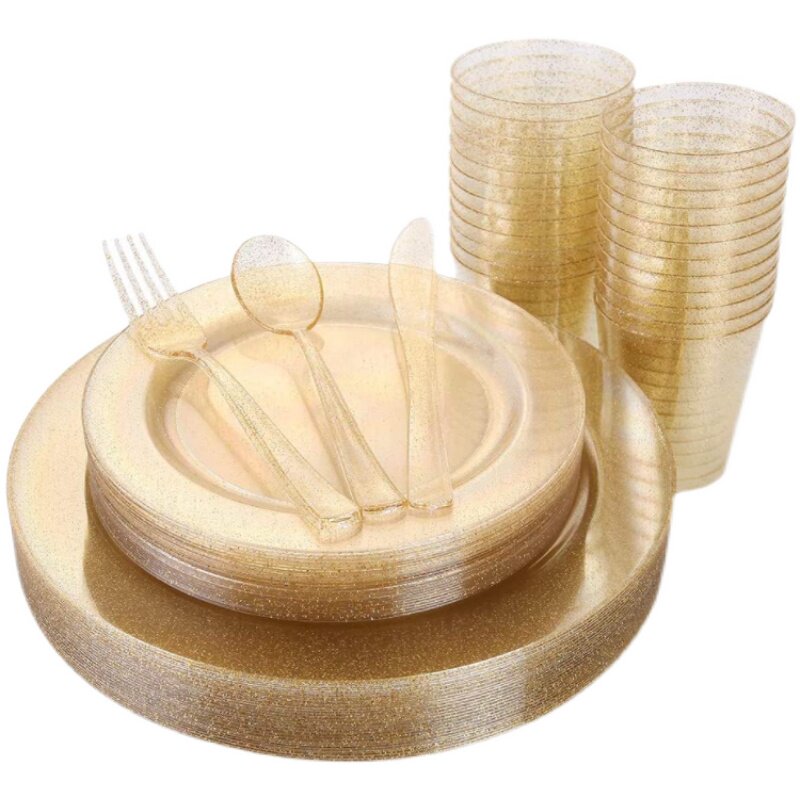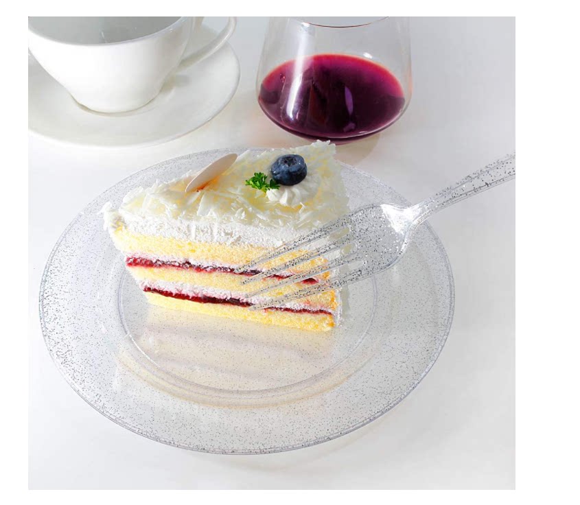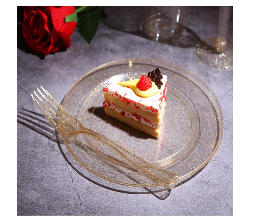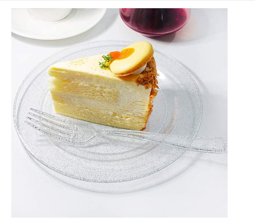 Одноразовая пластиковая тарелка с пирожным ярко -порошковой порошок твердый пластиковый посуду для костяного шведского шведского шведского стола. Служба чайная чай разбивает маленькая миска вилка