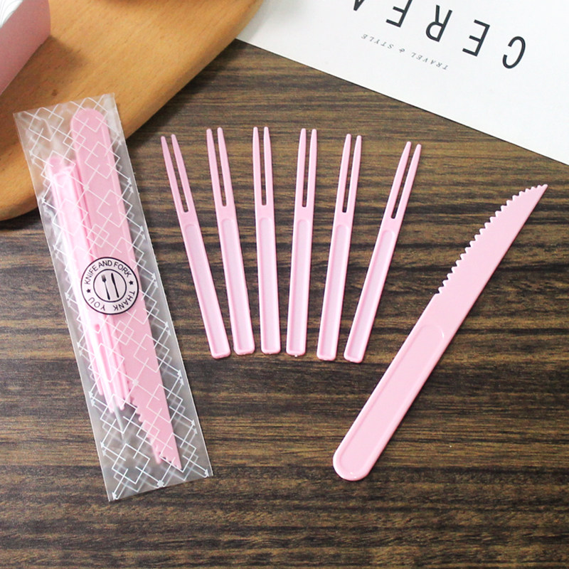 - Розовый нож развец 1 нож 6 вил 50 комплектов из 50 комплектов