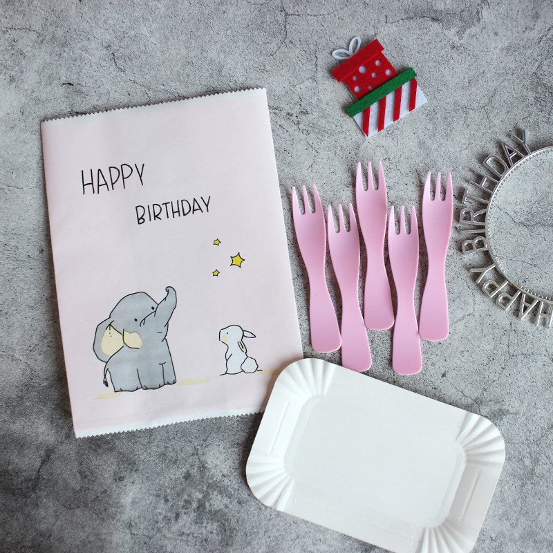 День рождения лезвие и вилка торт тарелка розовая еда -пластиковая вилка -ложка бумажной тарелки бумага для вечеринки одноразовая посуда