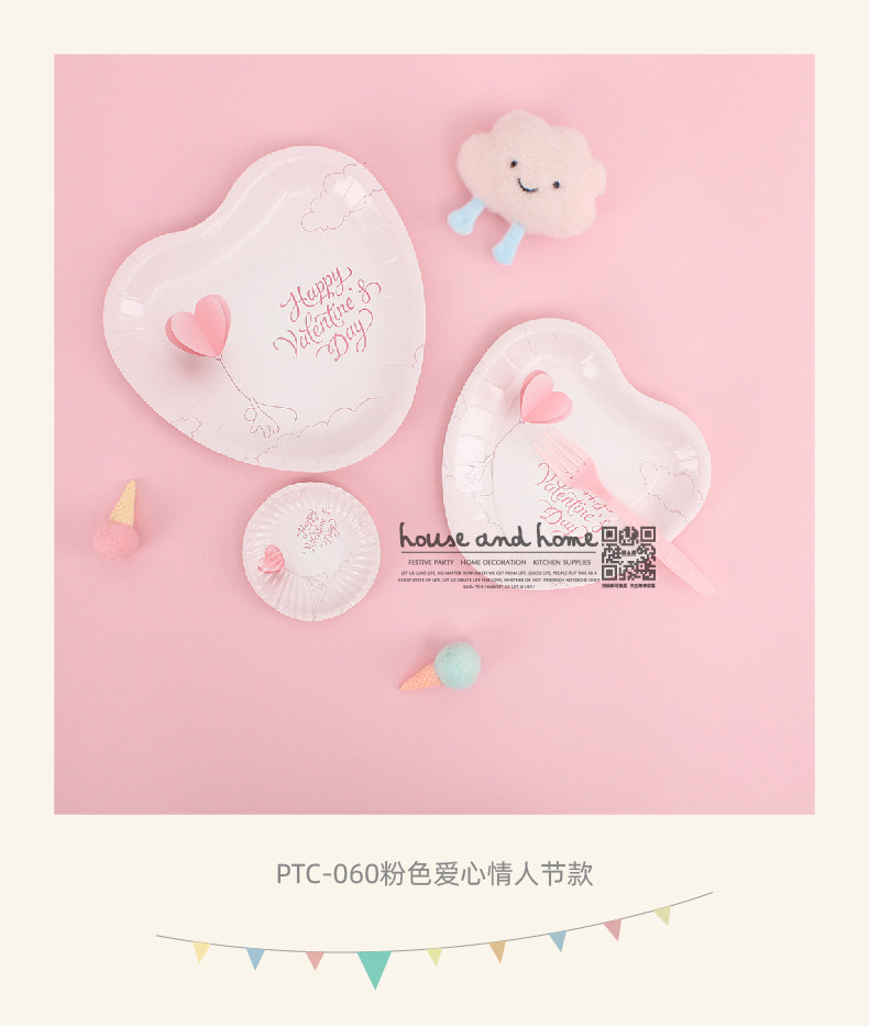 Одноразовая бумажная тарелка на день Святого Валентина, посуда на годовщину свадьбы, брендовый комплект
