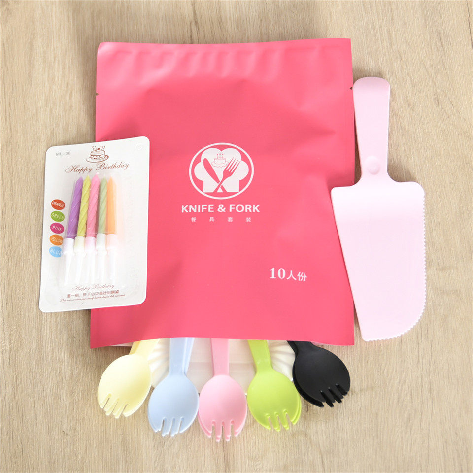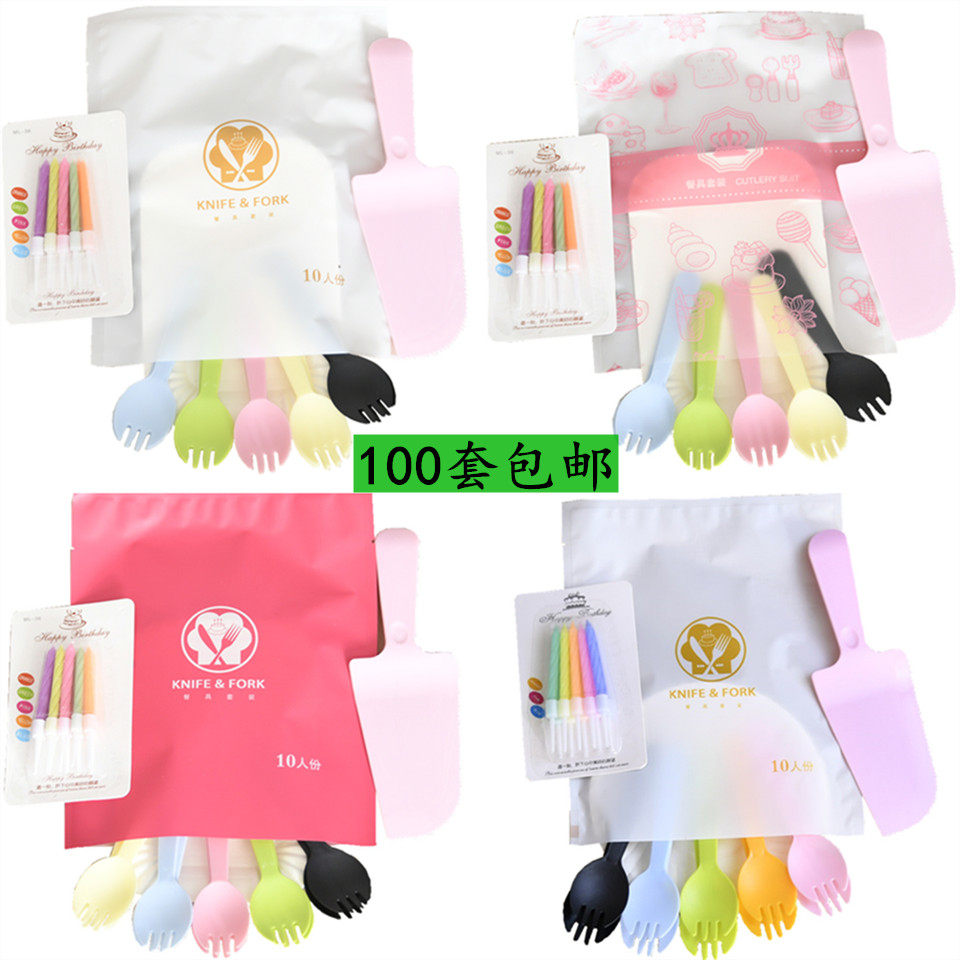 Одноразовый поднос одноразовый диск торт на день рождения, вилка ножа, комбинация целона, один -купюр один набор для торта наборы 100 комплектов бесплатной доставки