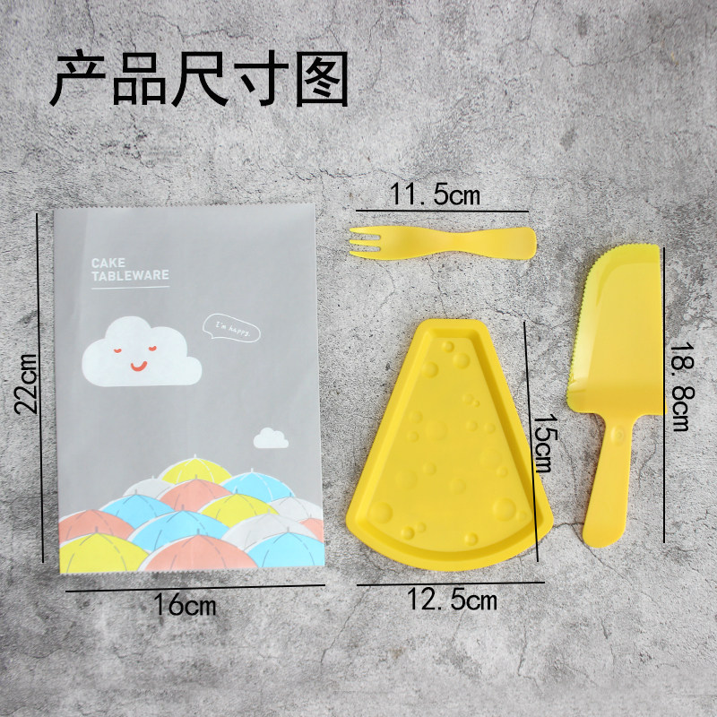 Размер: сырная тарелка 15 см*12,5 см Вилка 11,5 см Длина ножа 18,8 см