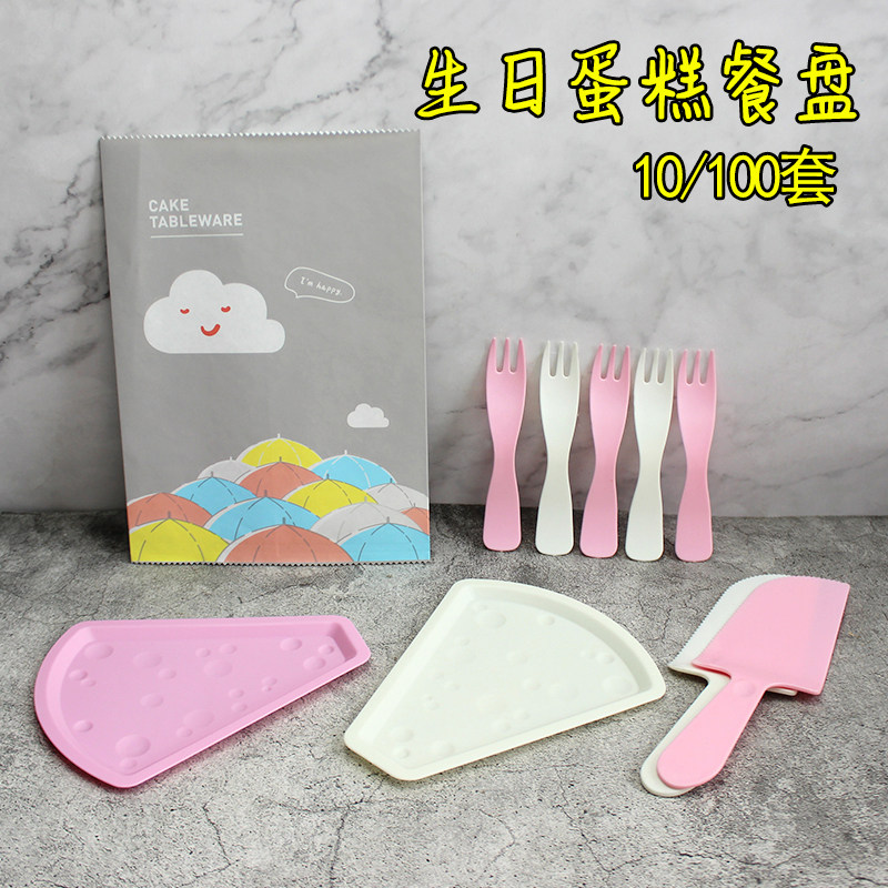 День рождения лезвие и вилочный торт ужин на столовую посуду одноразовые одноразовые лезвия и вилочная тарелка Комбинация детская цветовая вечеринка