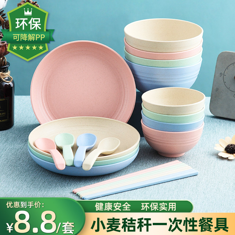 Одноразовая посуда, палочки для еды, пластиковый высококлассный экологичный комплект для домашнего использования, 4 предмета