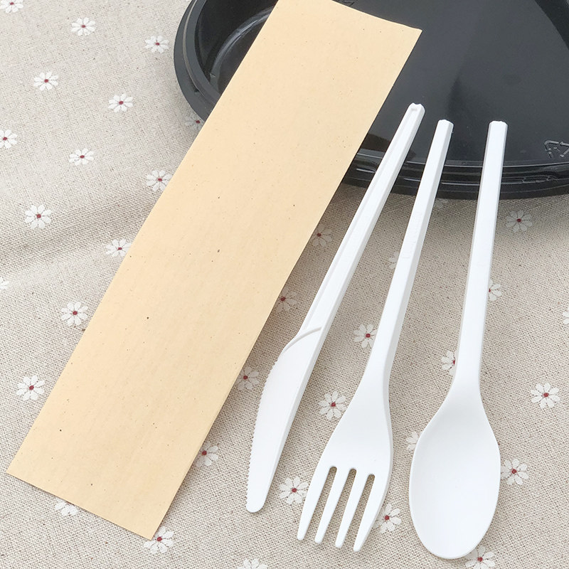 Ложка -вилка с ножом PLA может разлагать ложку, десерт на вынос, стейк, независимая упаковочная вилка для защиты окружающей среды Коммерческое оборудование коммерческие посуды
