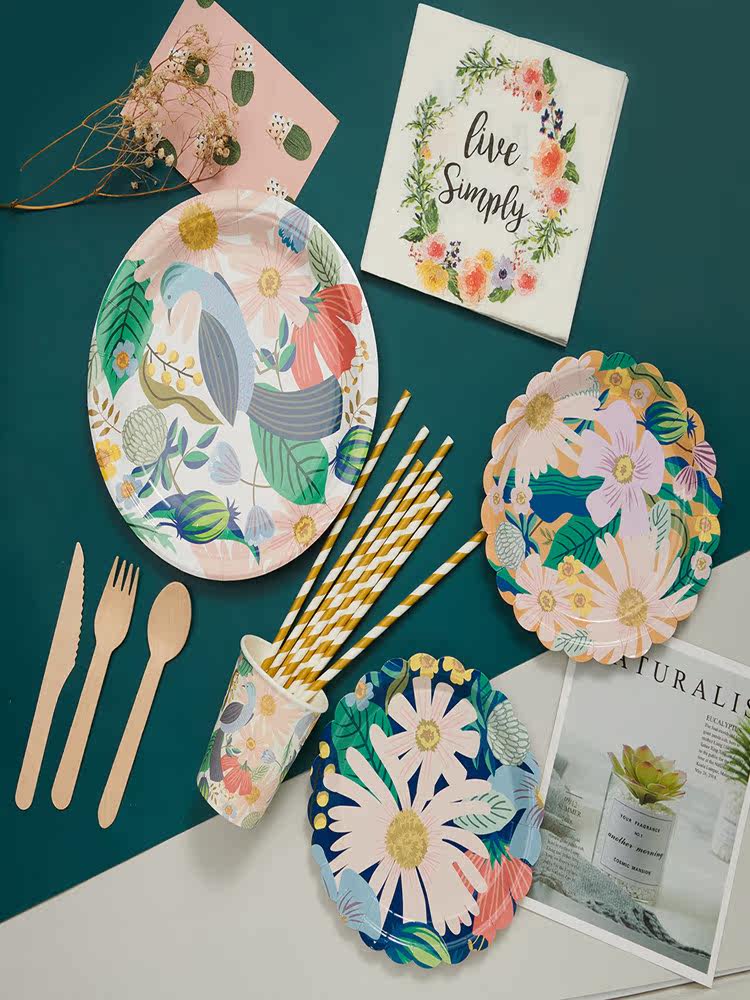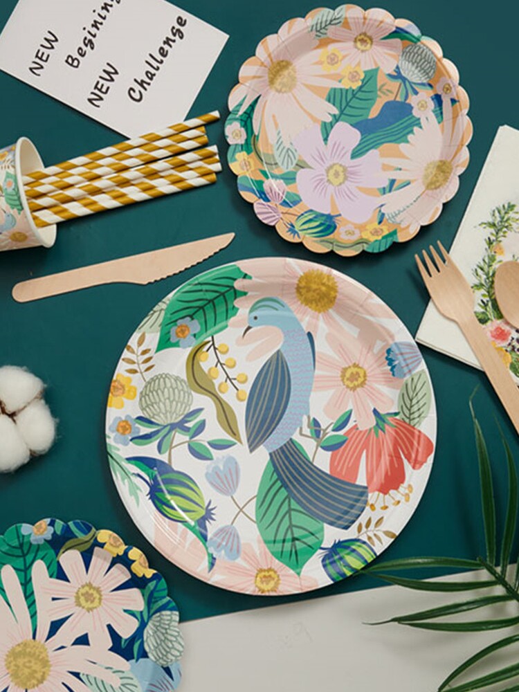Птичье слов цветочный аромат дата утилизации вечеринки бумажная чашка чашка для торта на день рождения дисплей дисплей набор синего цвета