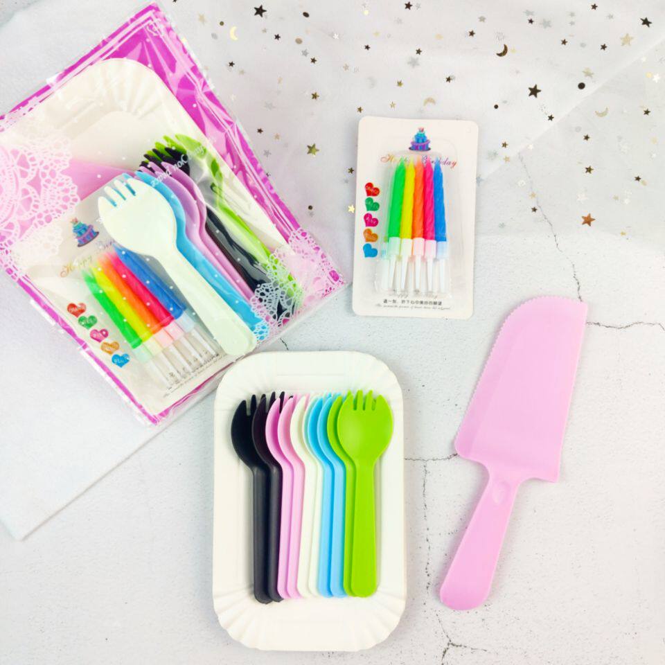 Одноразовая пластиковая вилка, свеча, комплект