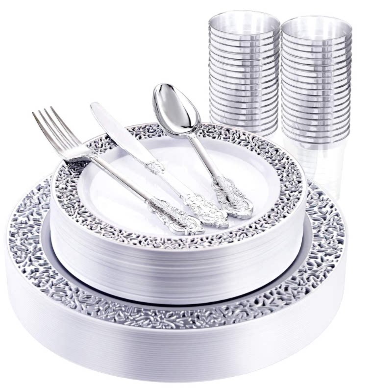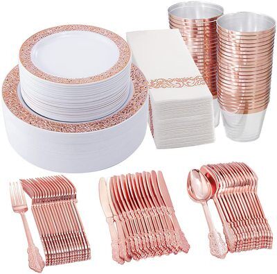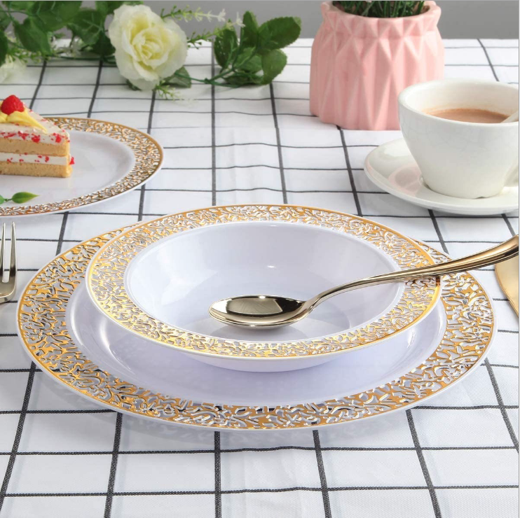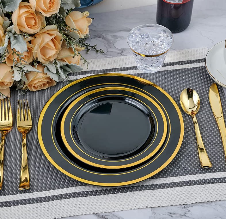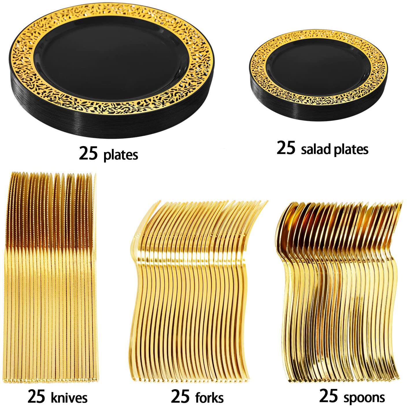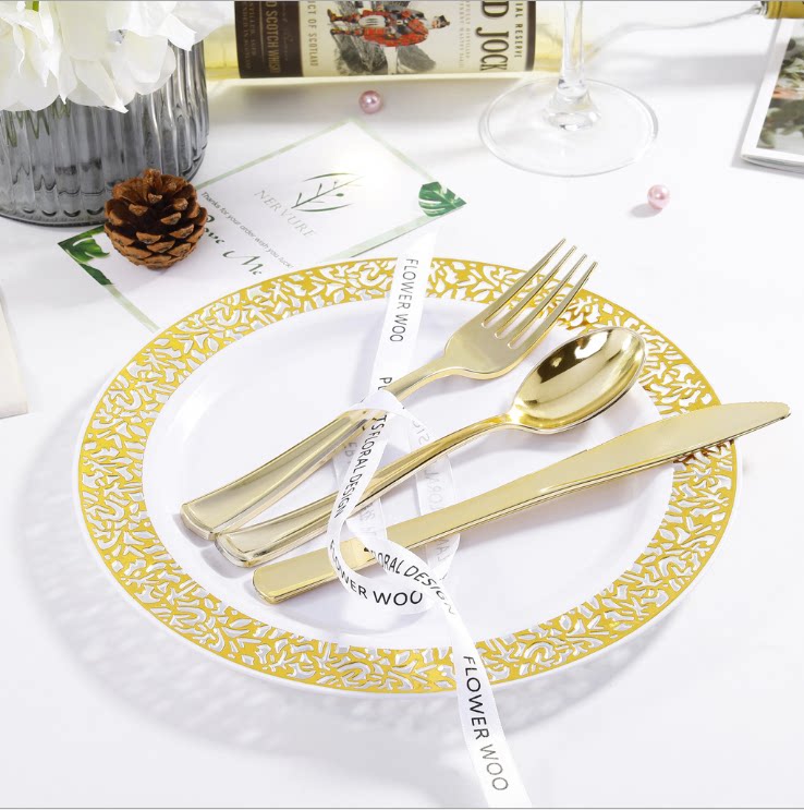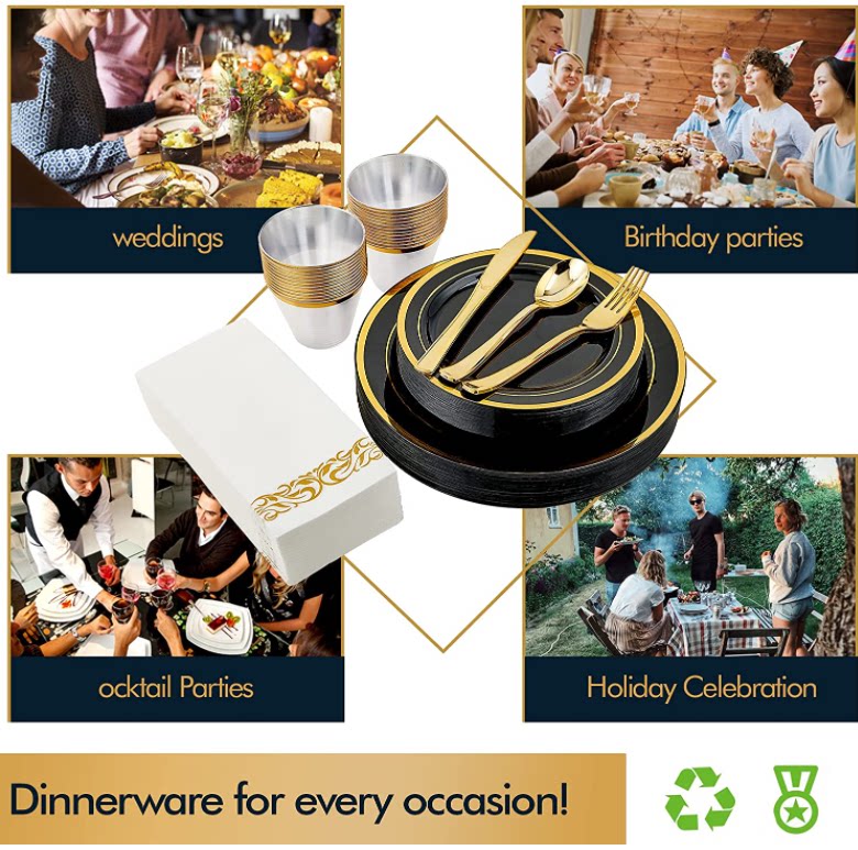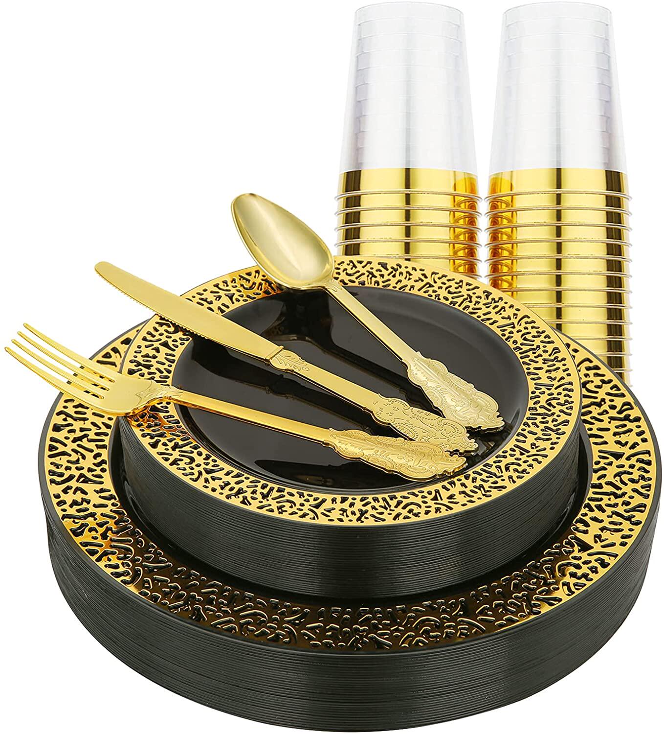 Комплект, одноразовая золотая посуда, пластиковый бокал из полипропилена, 175 шт