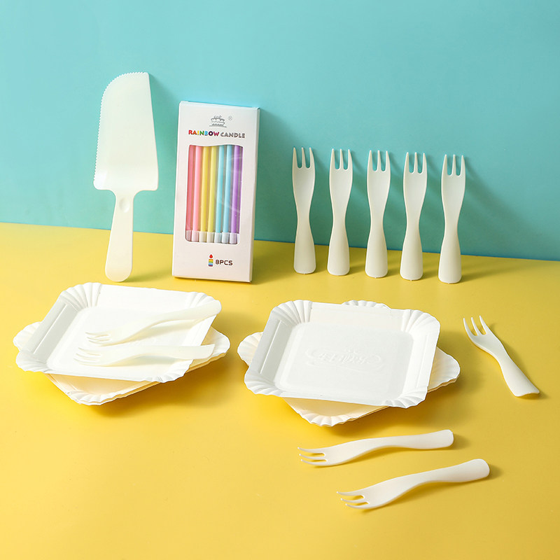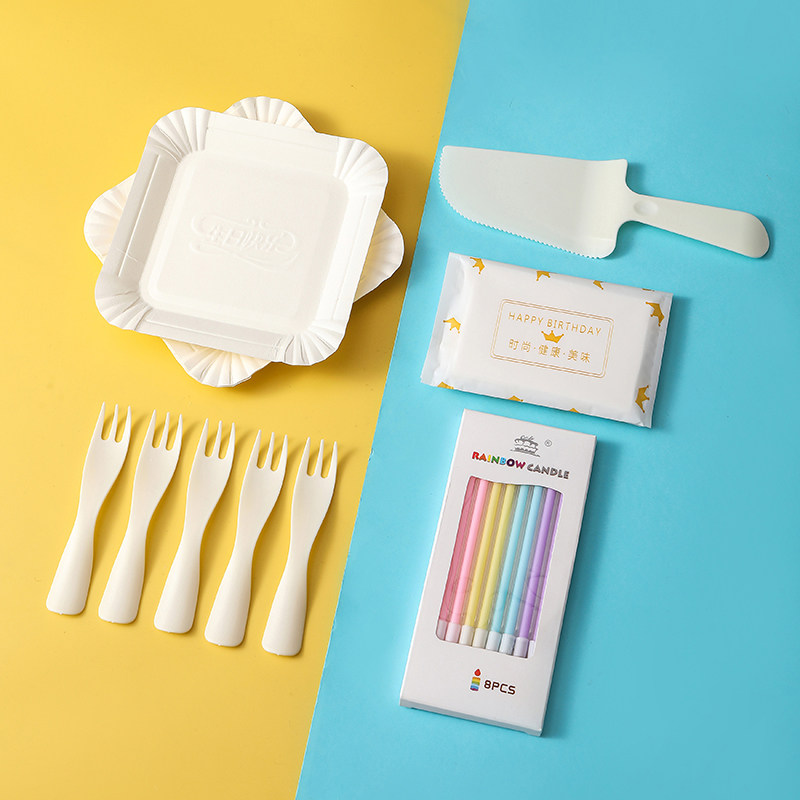 Одноразовая обеденная тарелка, комплект, свеча, шапка, набор, посуда, 6 шт