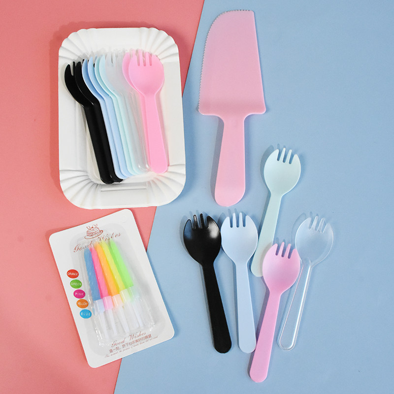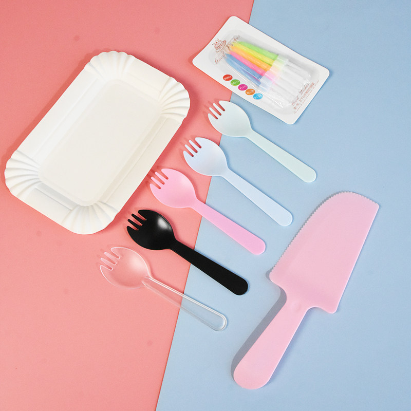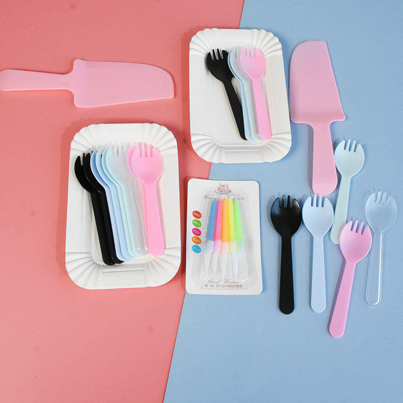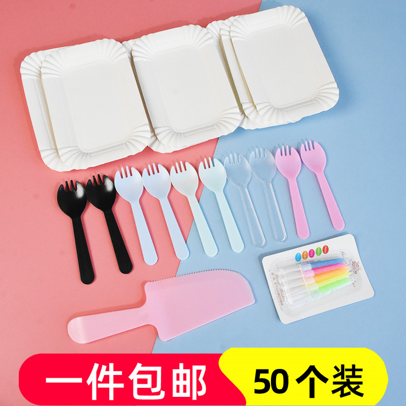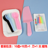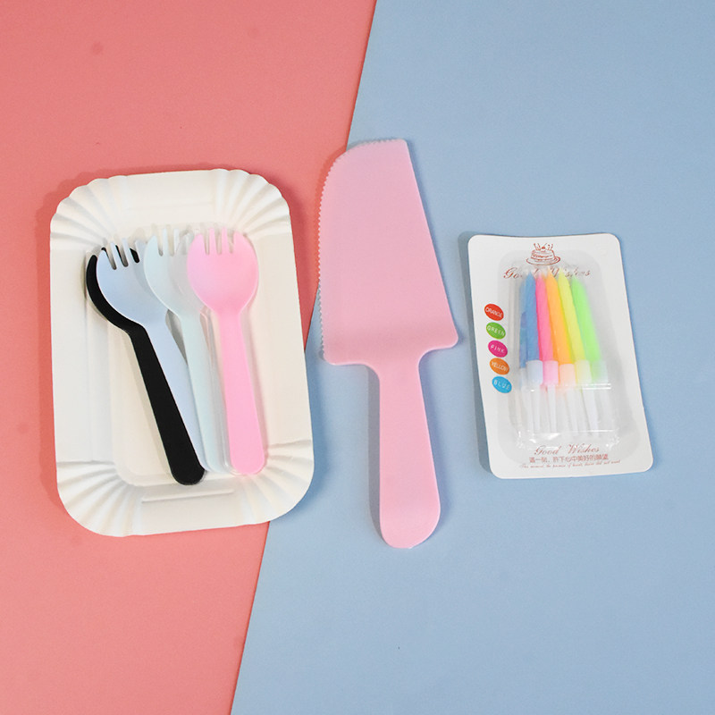 Одноразовая тарелка, нож и вилка, комбинация свечей