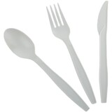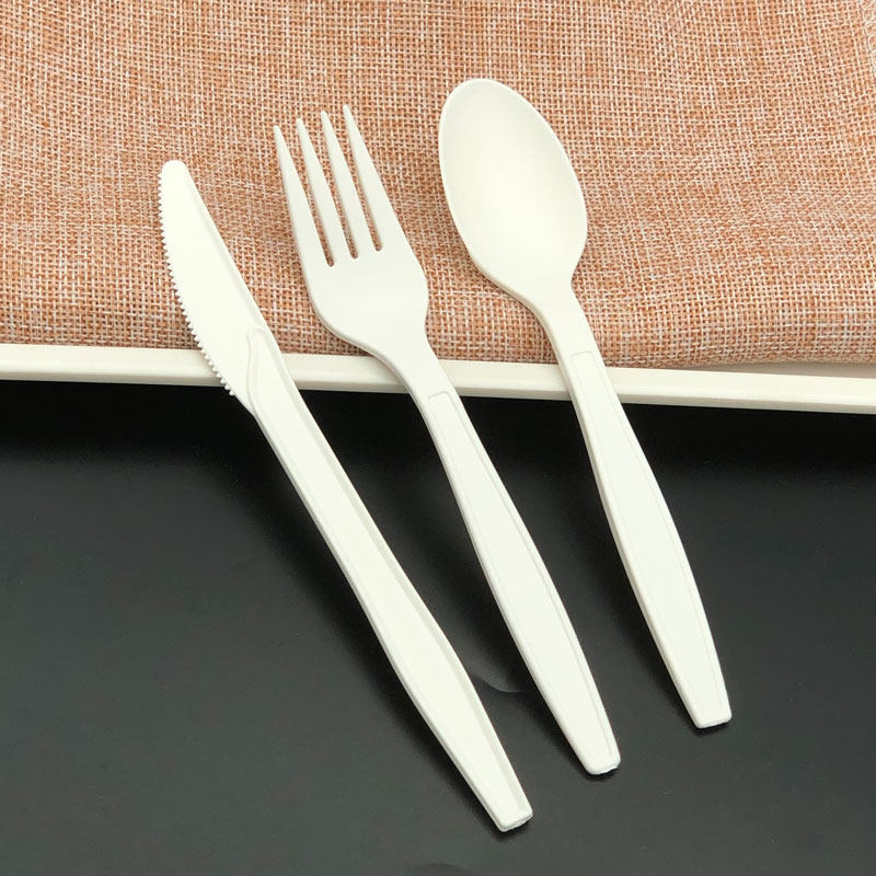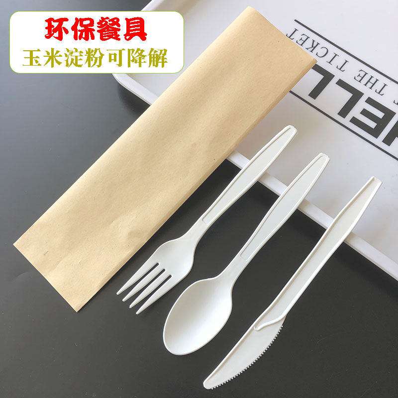 Один -время разлагаемой нож -вилки ложка трех -деприсерская десерт, пицца вынос кукурузного крахма