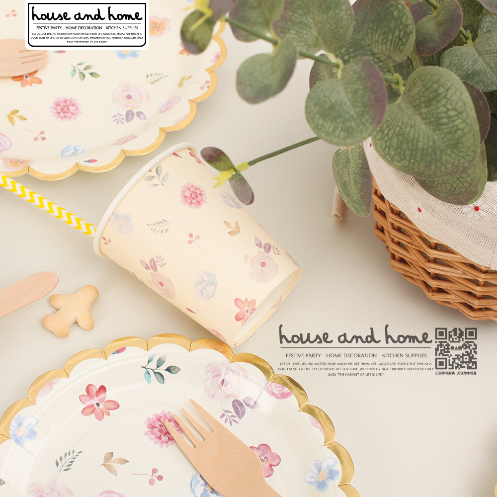Одноразовая брендовая ретро посуда для кемпинга, обеденная тарелка, комплект, в цветочек
