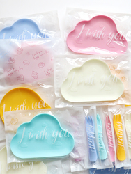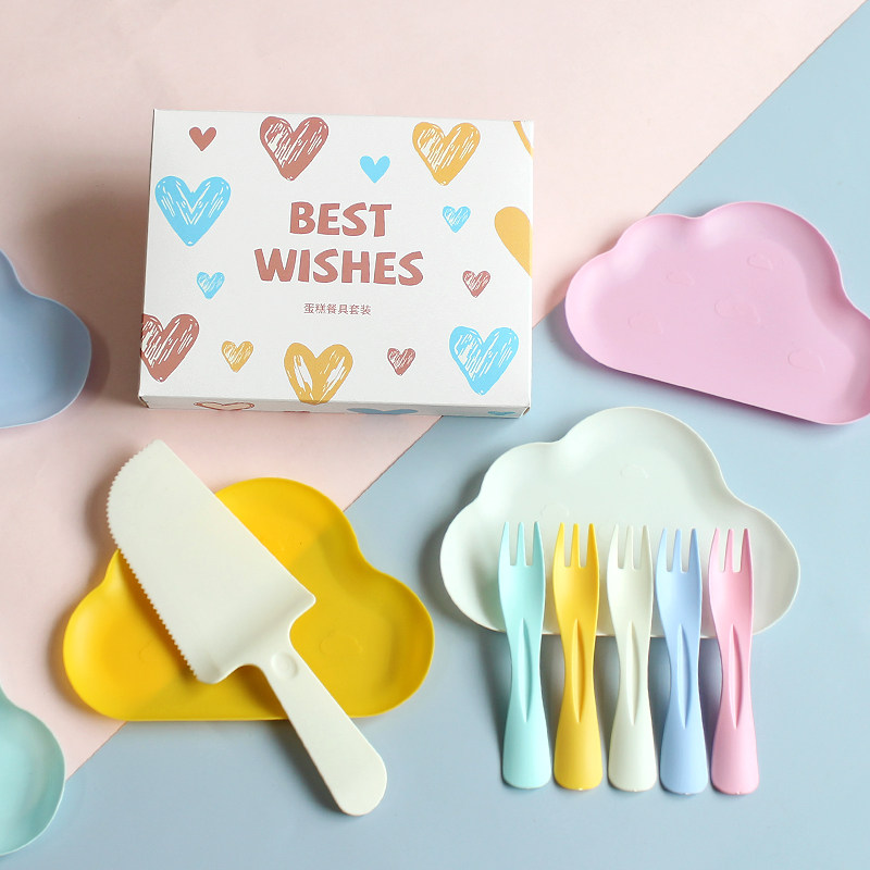 Одноразовая столовая для торта на день рождения, нож и вилка комбинированные поставки вечеринки, посуда для вечеринок, пластиковая пластинка для облачной тарелки