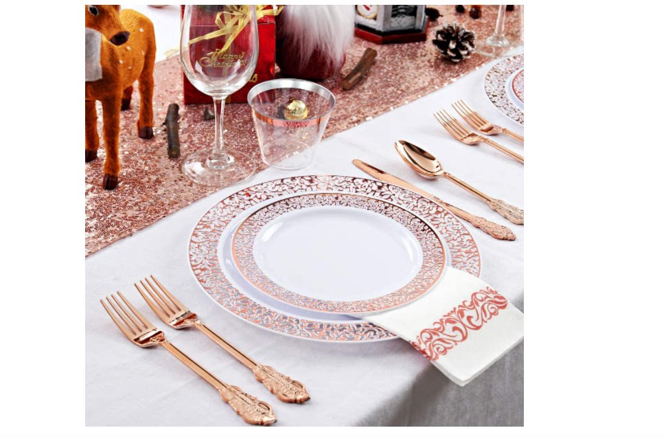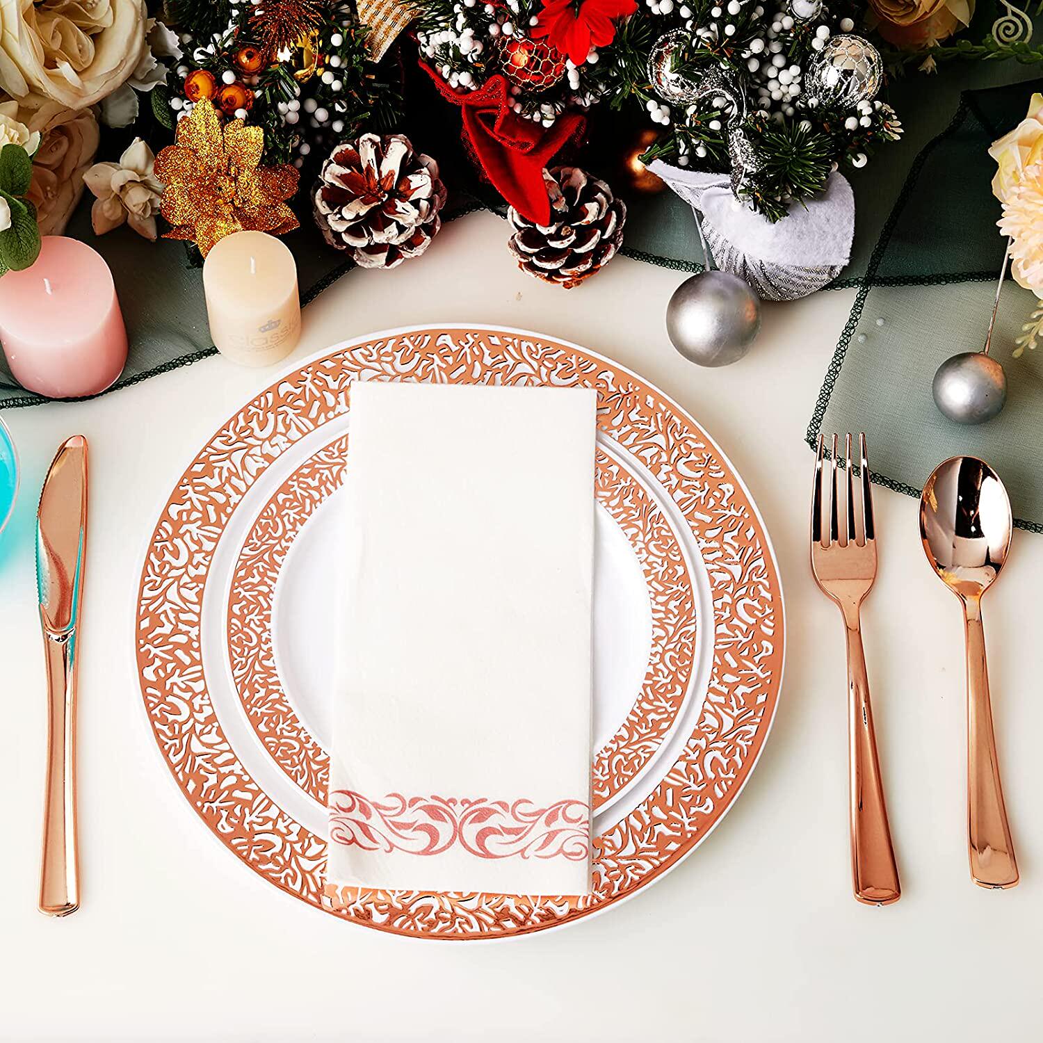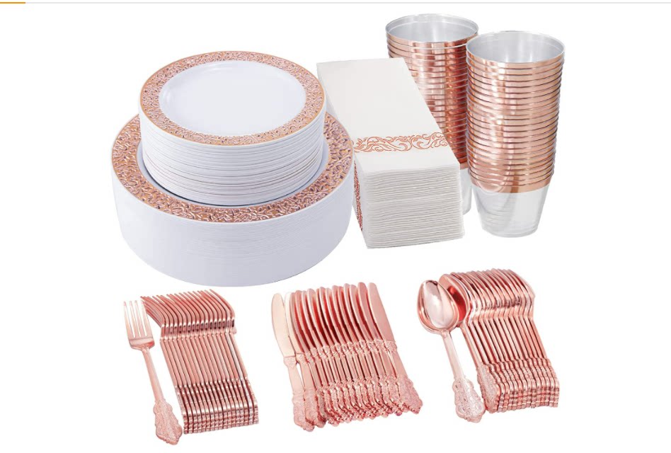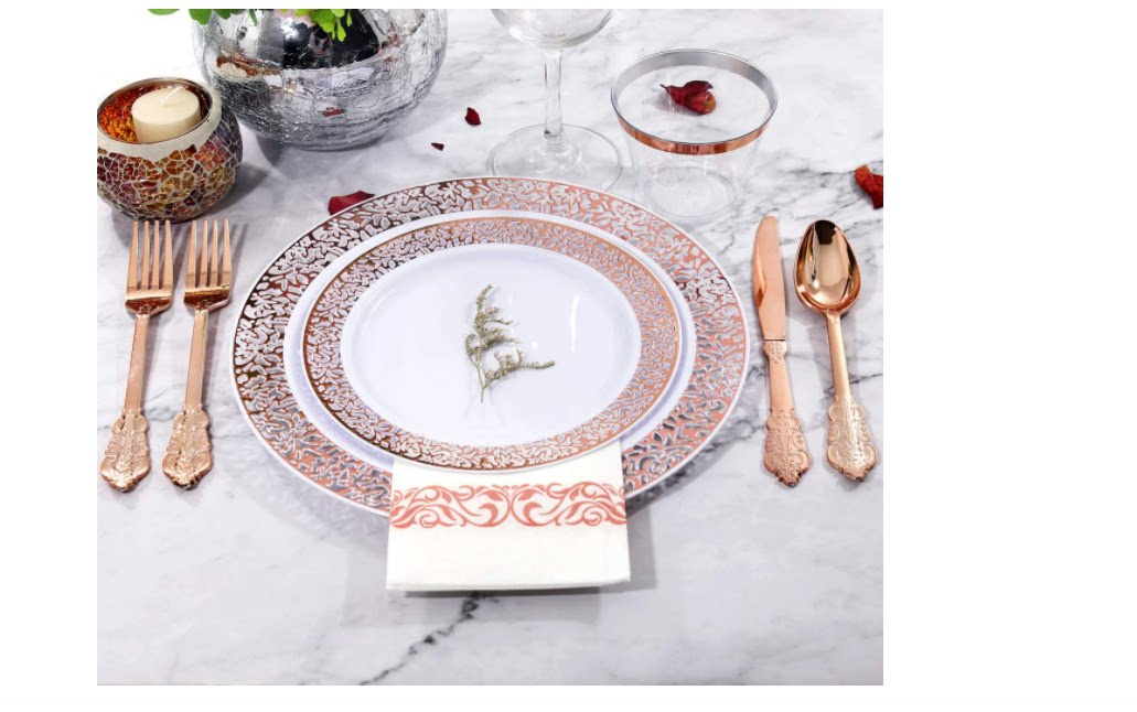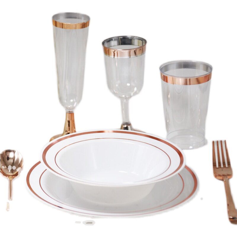 Розовое золото одноразовое послание вечеринка пластиковая вечеринка по случаю дня рождения Банкет ужин с высоким шведским шведским столом.