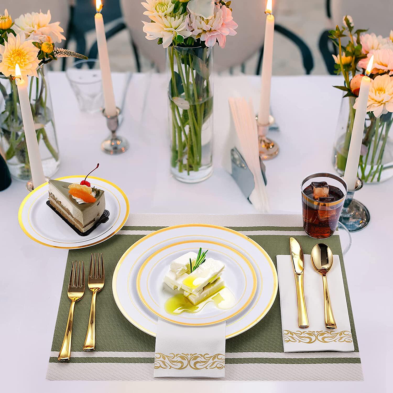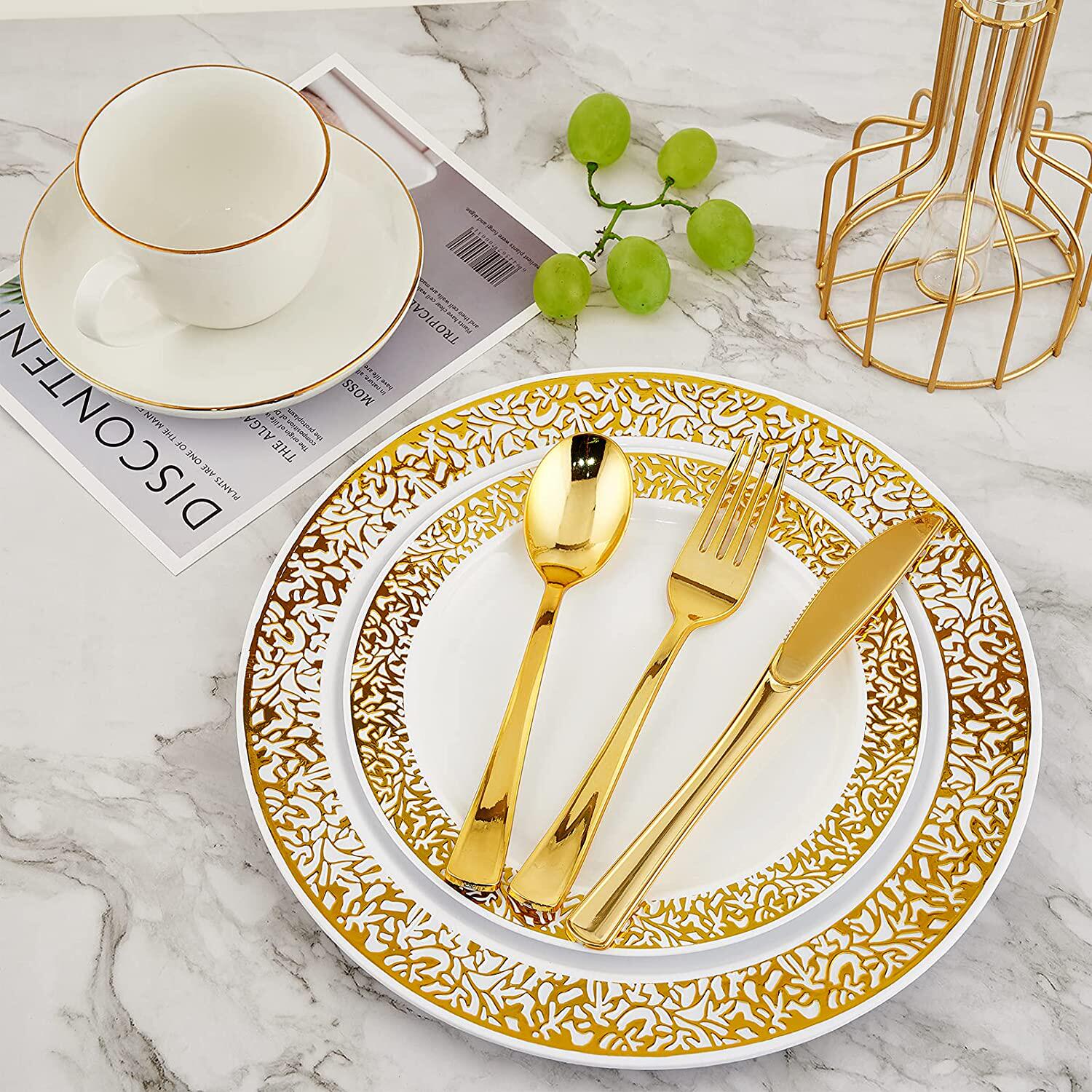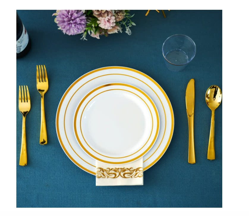 Золотой обеденный ужин одноразовый западный квадратный тарелка, нож, ложка, круглый рельеф