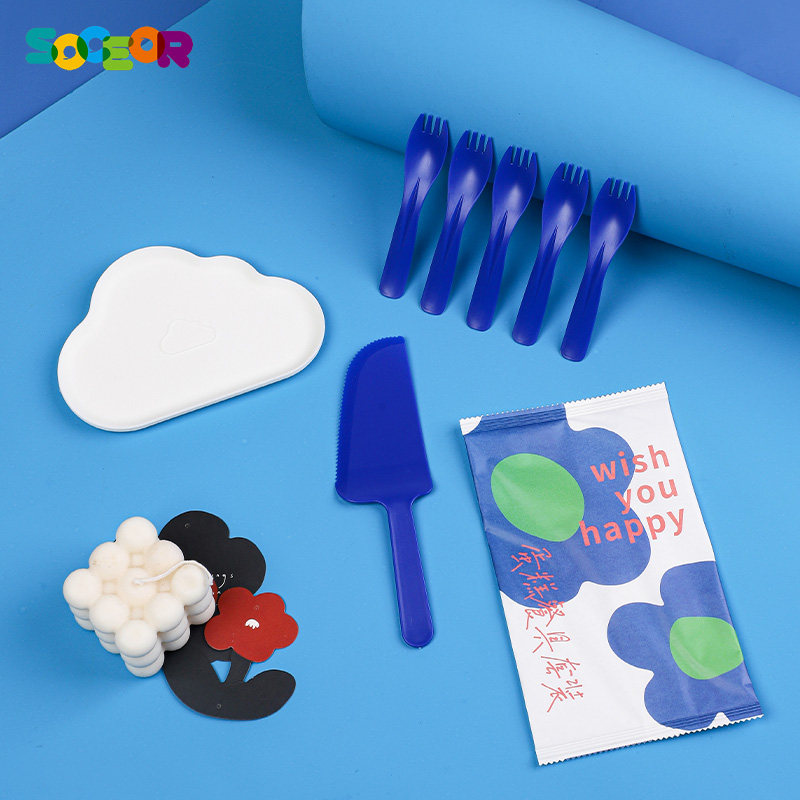 Нож на день рождения торт и вилка набор одноразового ножа для торта и вилка Klein Blue Cloud Cake Нож для торта и набор для вилки