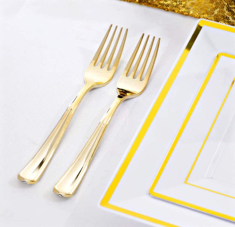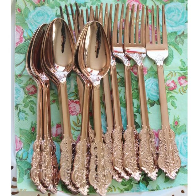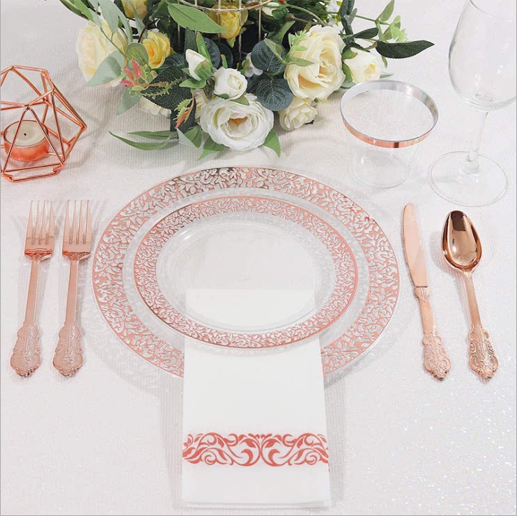 Одноразовый пластиковый комплект, золотые серебряные бумажные салфетки, 25 шт, розовое золото, 3 предмета