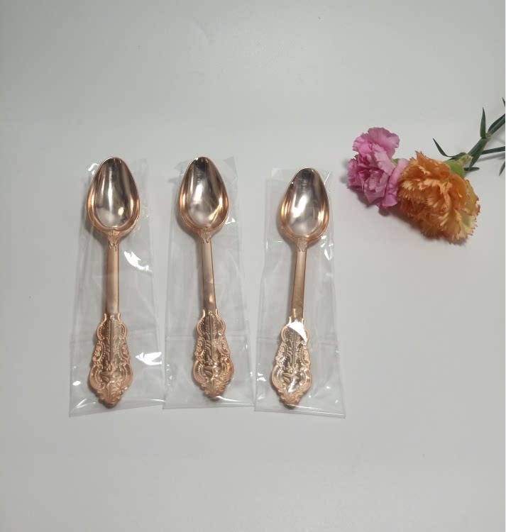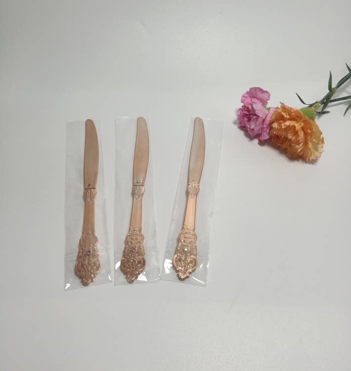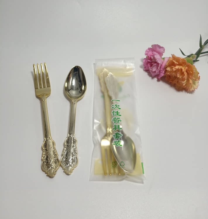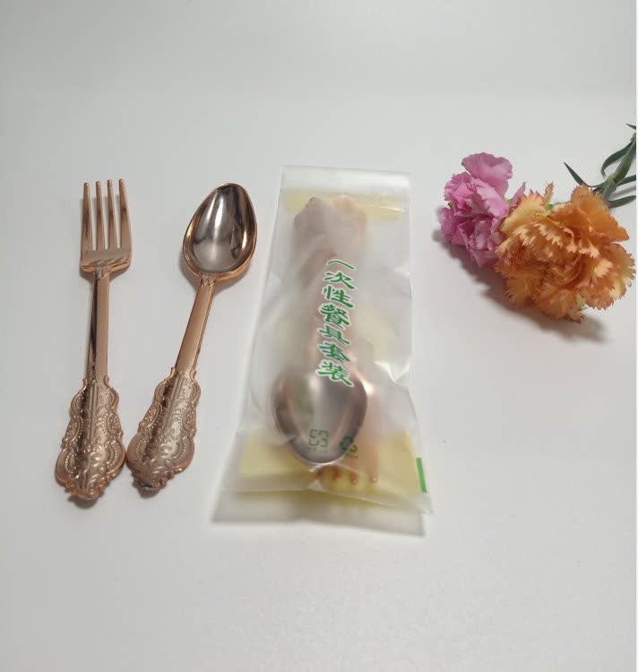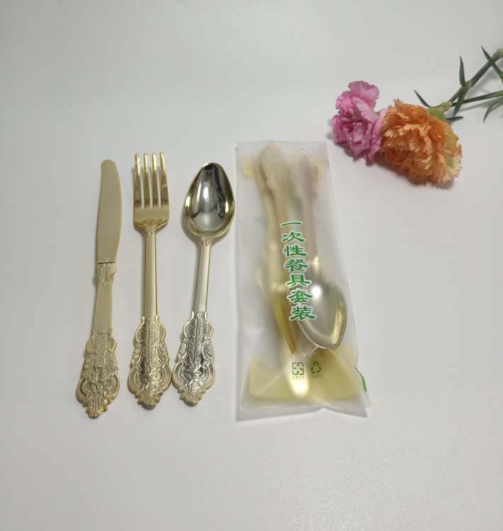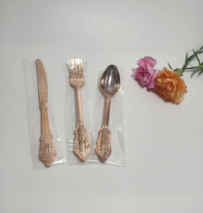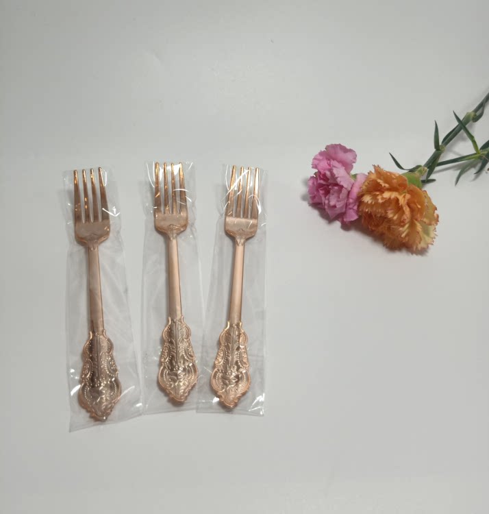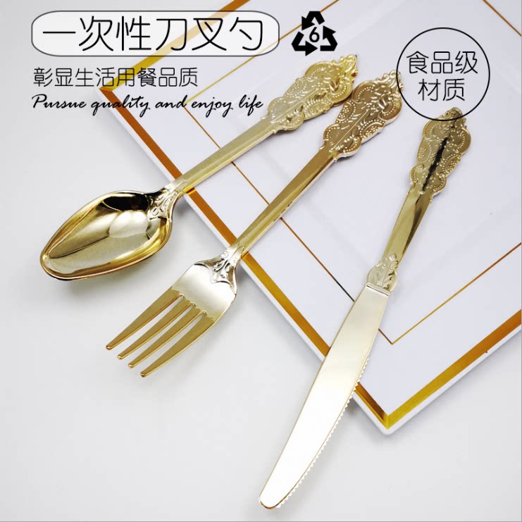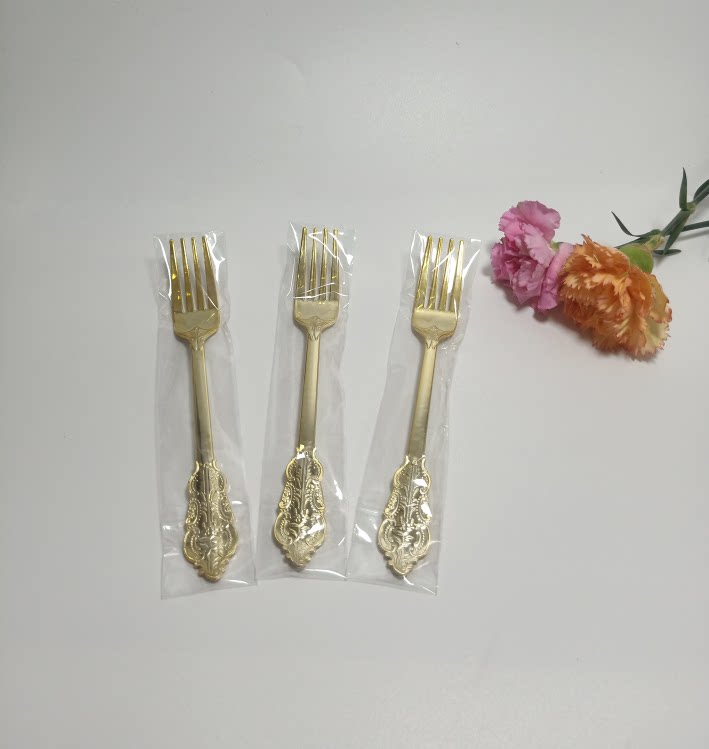 Независимая упаковка одноразовая пластика Золотая рельефа скульптура вилка вечеринка Западная наличные вилка ложки горячая розовая ножа ложки