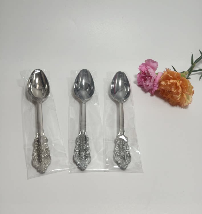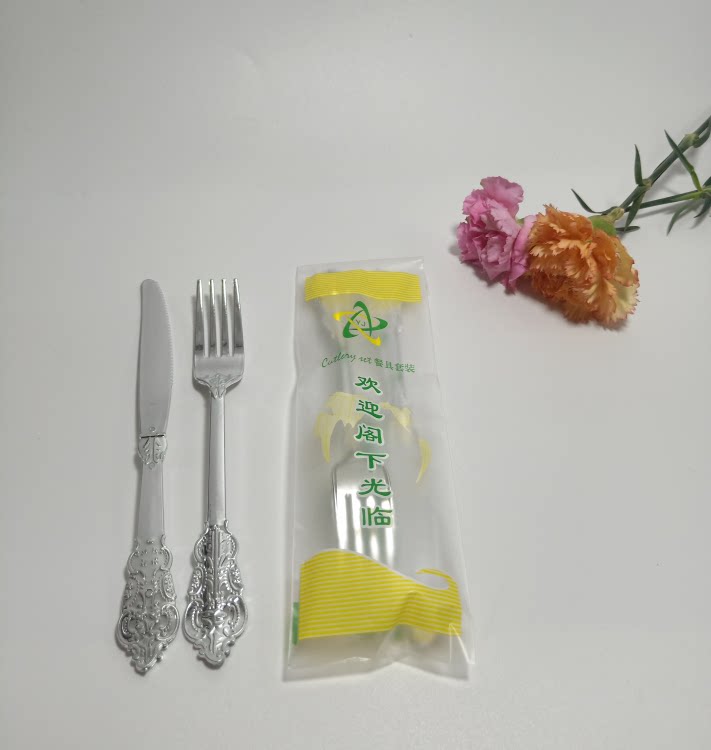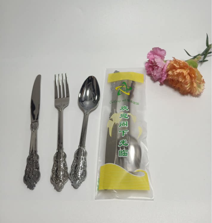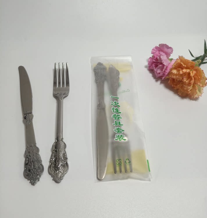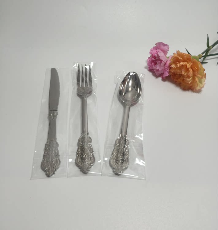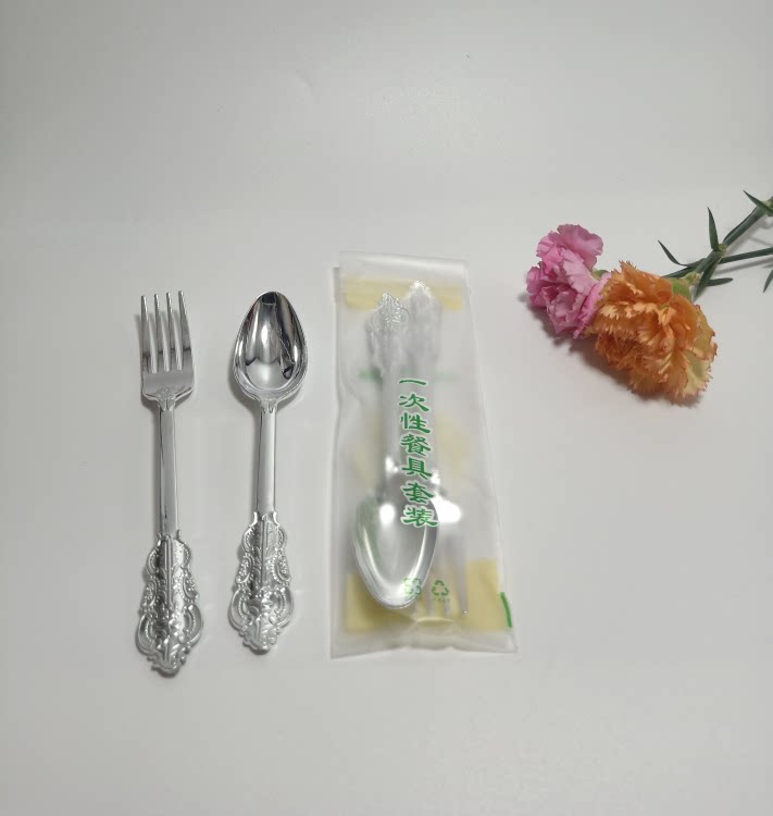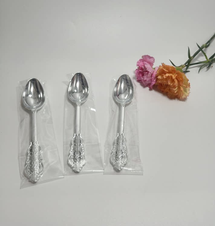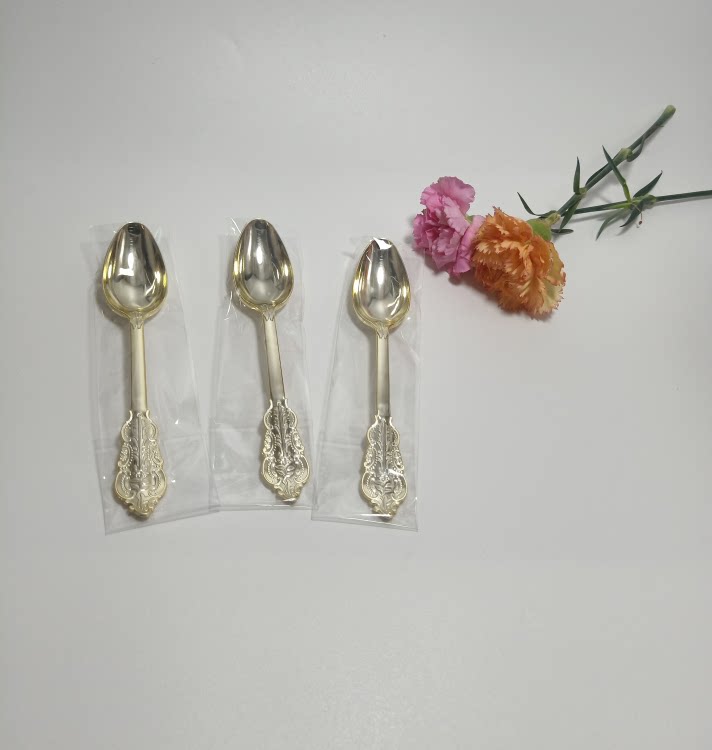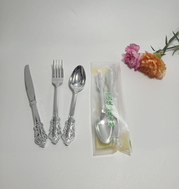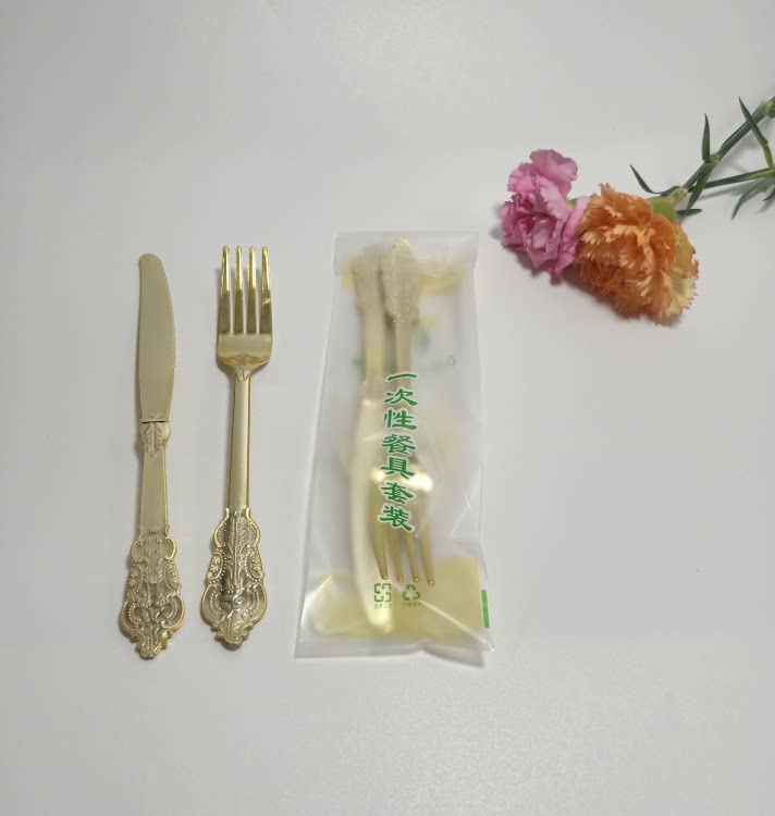 Независимая упаковка одноразовая пластика Золотая рельефа скульптура вилка вечеринка Западная наличные вилка ложки горячая розовая ножа ложки