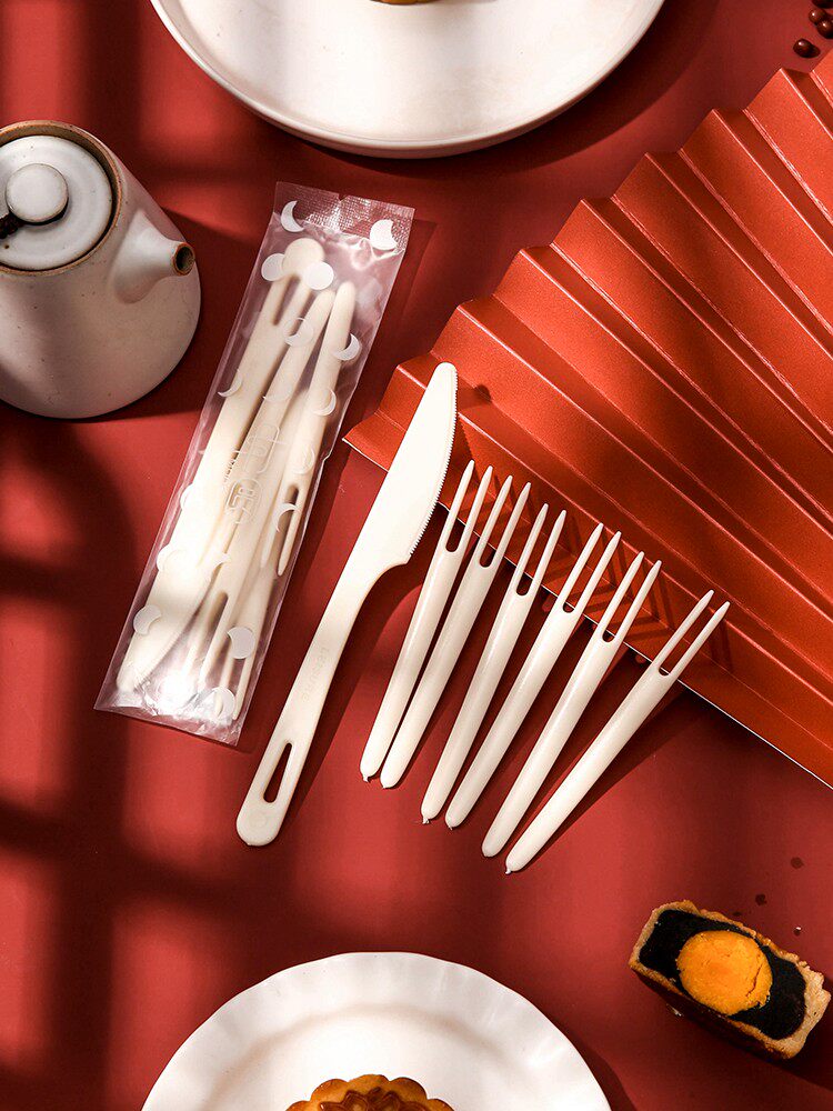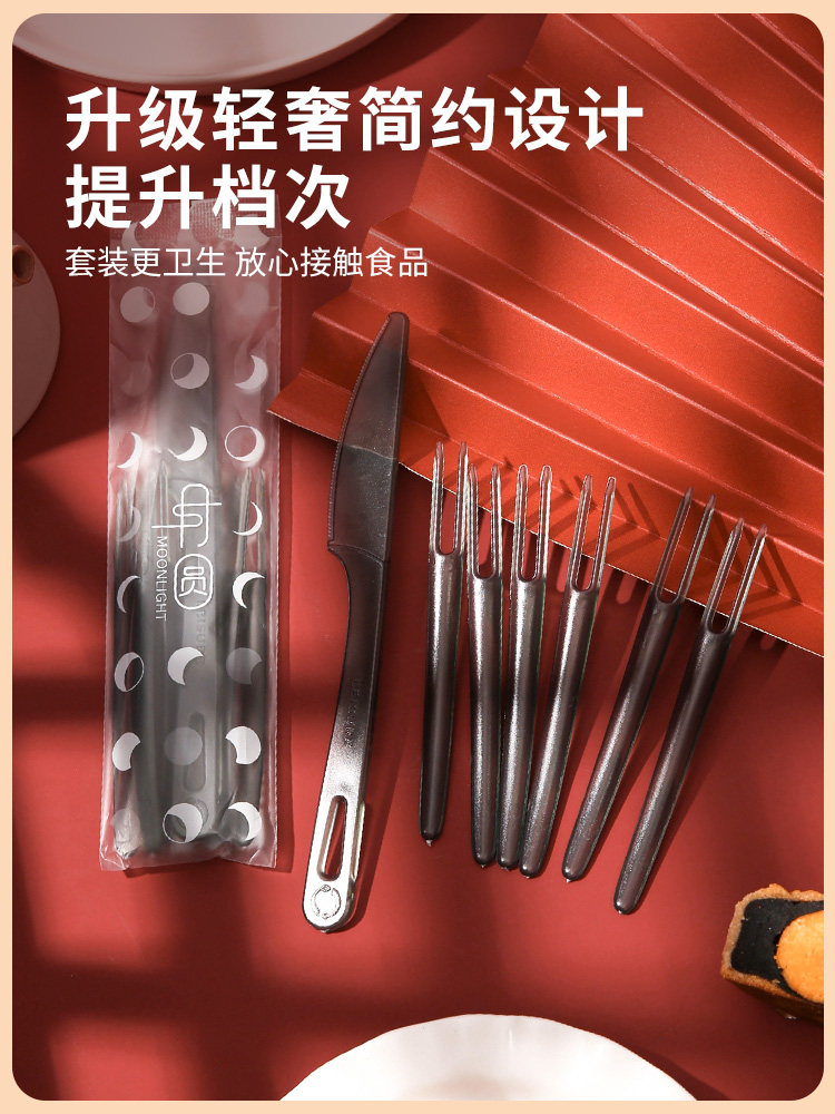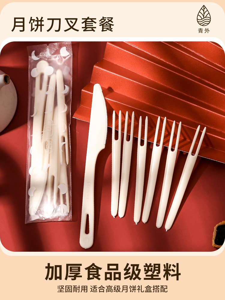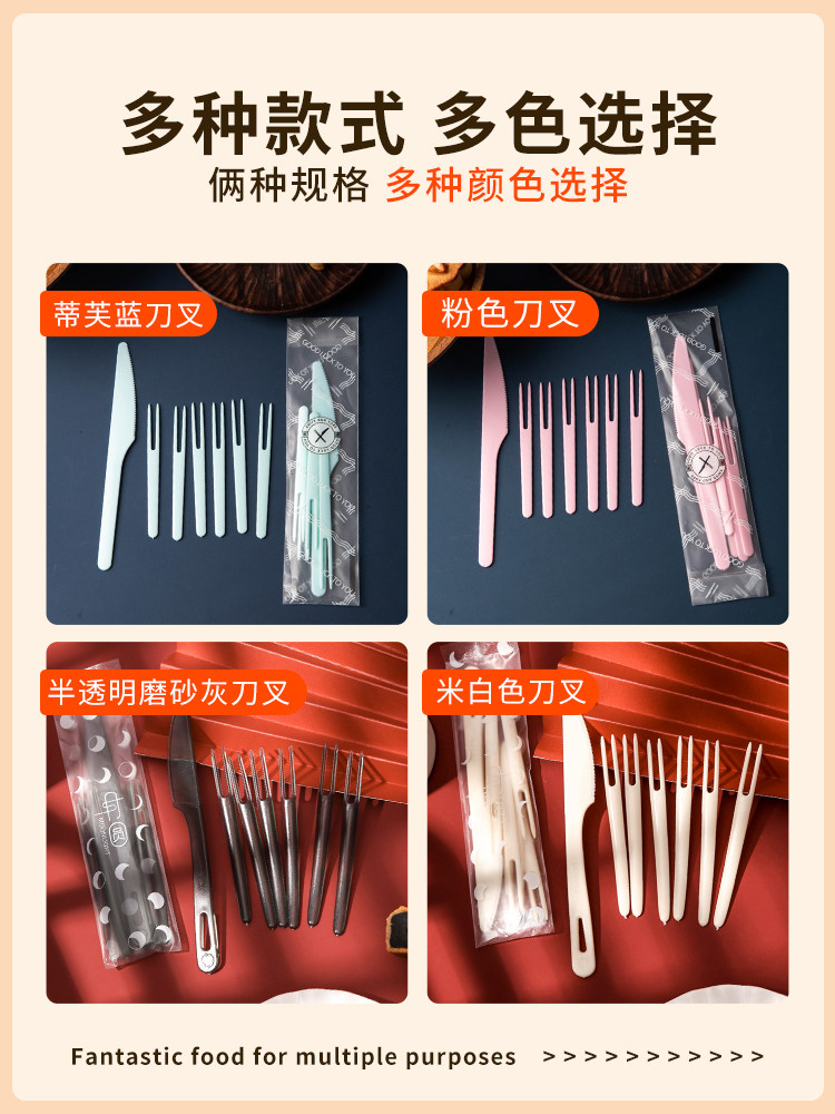 Пластиковая пластиковая нож для лунного ножа набор 1 нож, 4 вилка 6 вилка 100 комплектов одноразового фруктов, навязчивая кожа, кожа, 10, 10 нож.