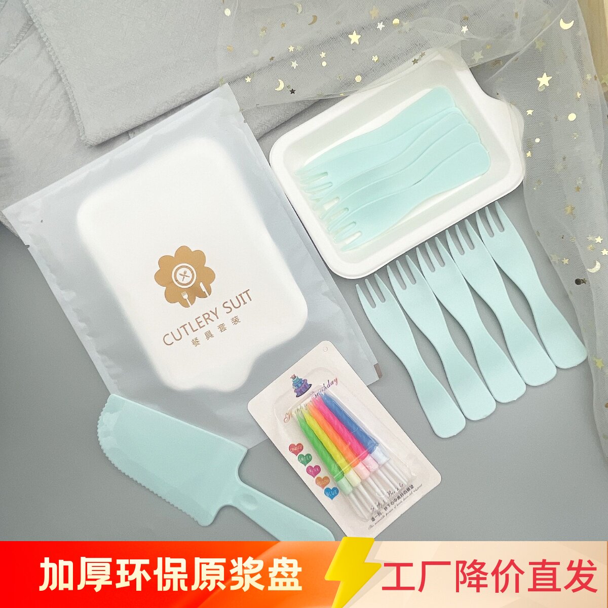 Одноразовая посуда, комплект, молочко, обеденная тарелка, увеличенная толщина