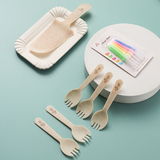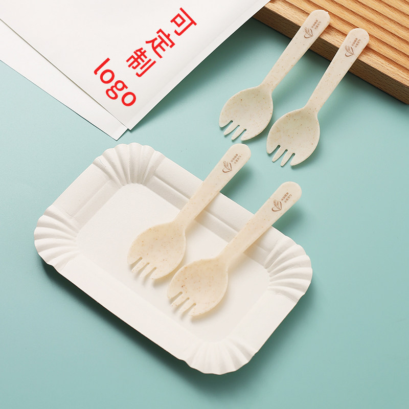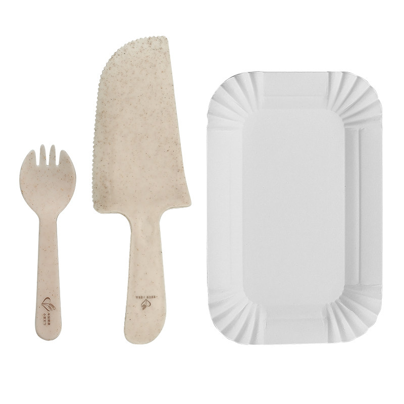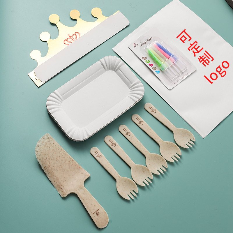 Пшеничная соломенная ложка набор детских дневных тортов, посуда для вечеринок, собирает одноразовый лезвие и бумажный пакет вилки