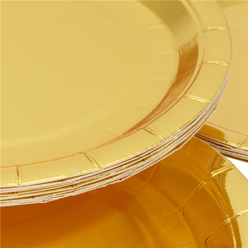 Одноразовый обеденный стол поставляет бумагу, покрытую чистого золото, экологическая бумага и бумажная чашка бумажная панель, разлагающаяся набор посуды для вечеринок.