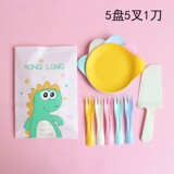 Food -Распространение цветной пластиковой тарелки Yun Duo Duo Duo Детский мультфильм день рождения торт дата одноразовая посуда для посуды