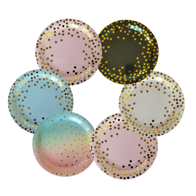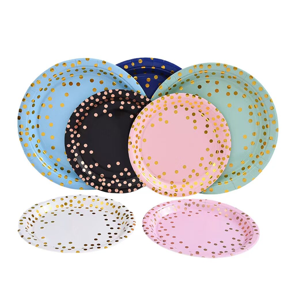One -время разлагаемой бумажной посудой горячее золото, покрывающее бумажное лоток экологически чистые столовые расходные материалы серия вечеринок