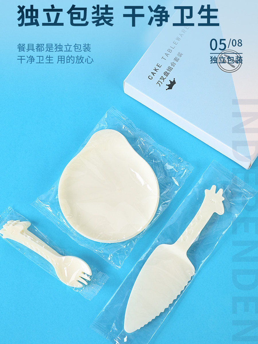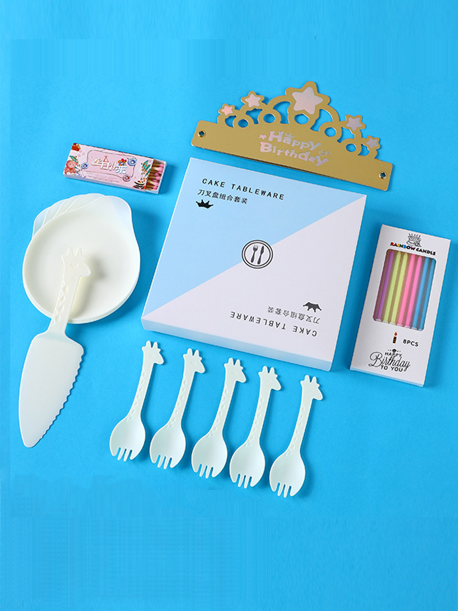 День рождения торт, посуда для торта, ножа и вилки Комбинация одноразовой вилочной тарелки блюда