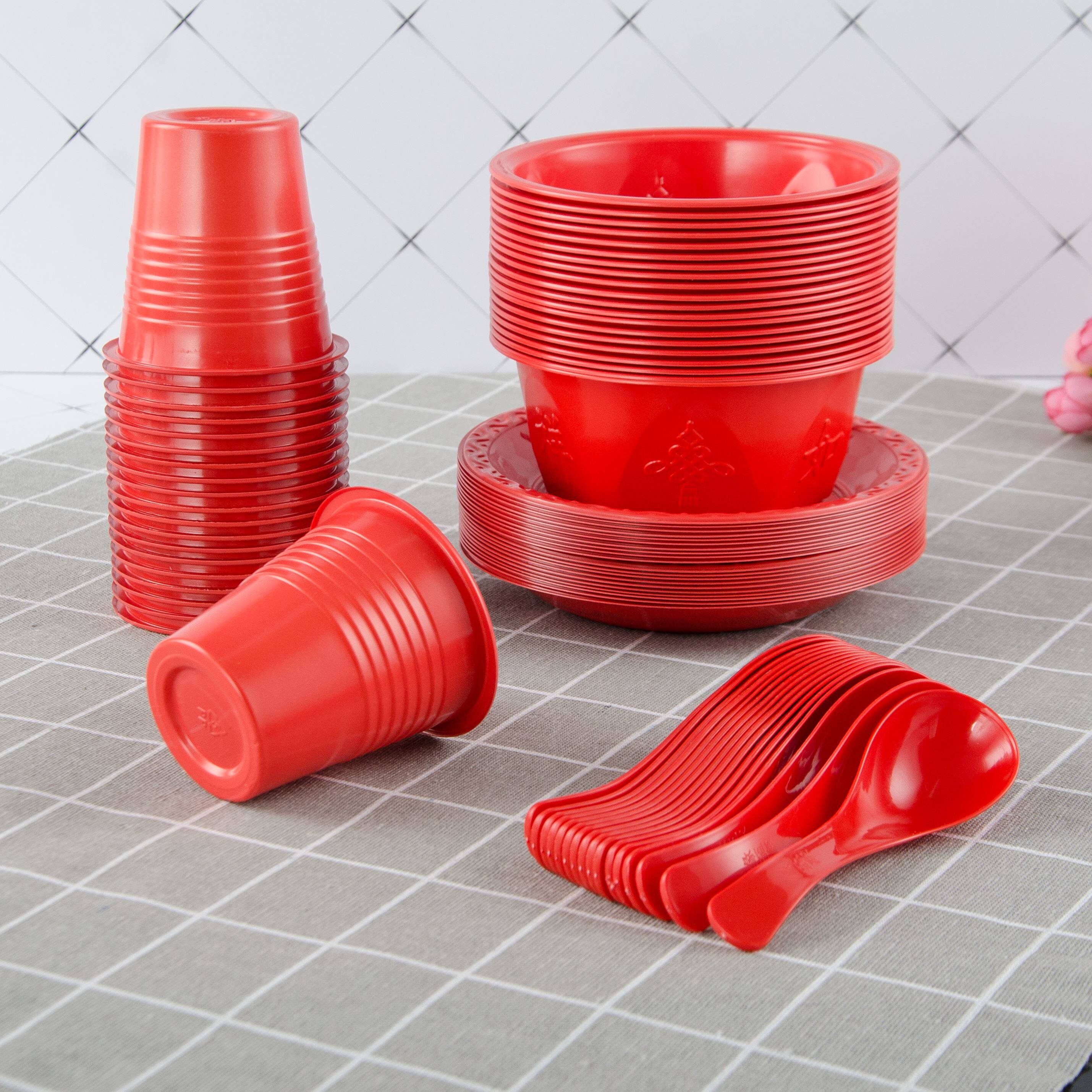 Одноразовый комплект, посуда, экологичная красная ложка для домашнего использования, увеличенная толщина