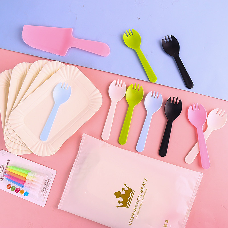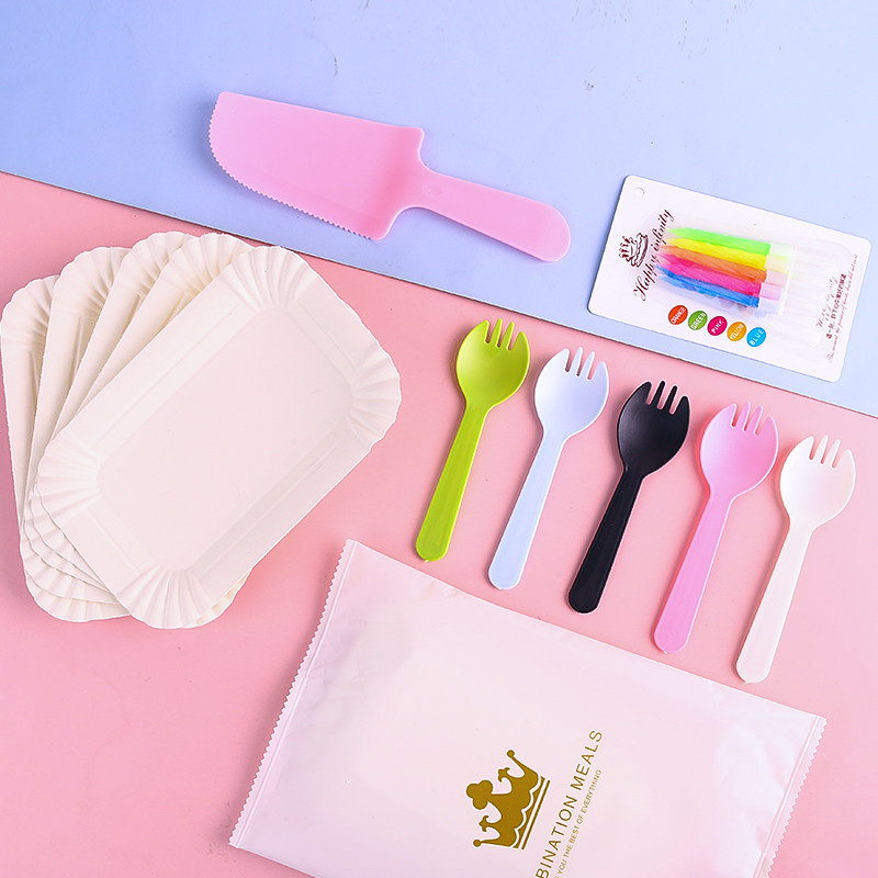 День рождения выпечка торт блюдо вилка одноразовая бумажная лотка нож и вилка комбинированные таблицы набор набор таблицы вилки табличка тарелка тарелка тарелка блюда