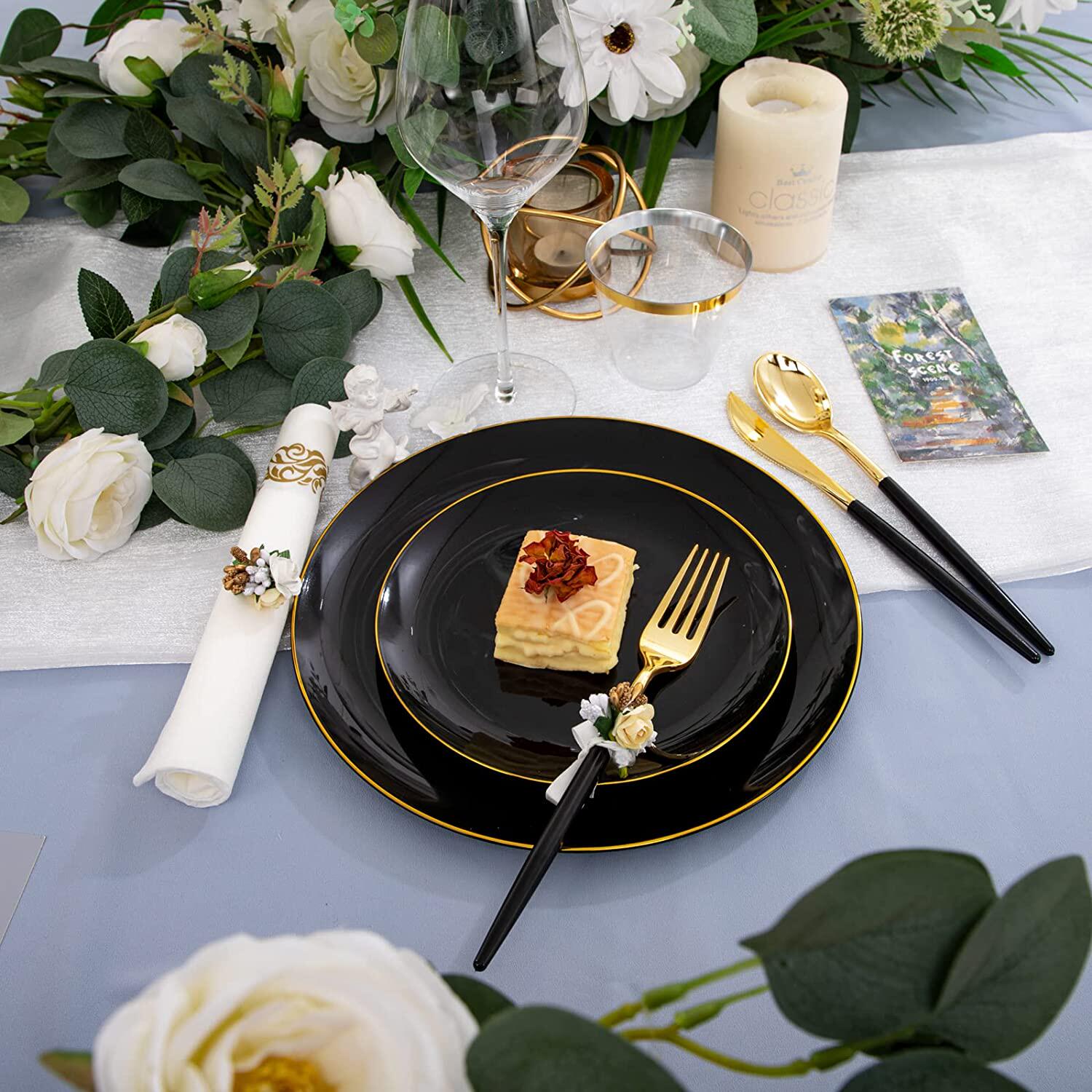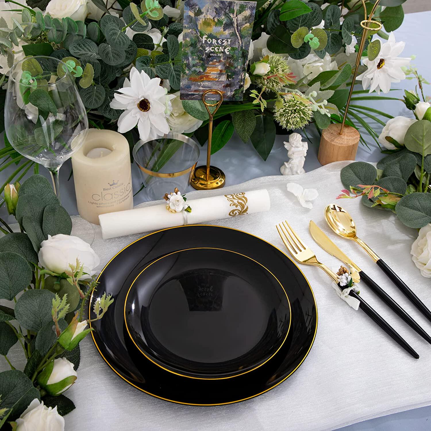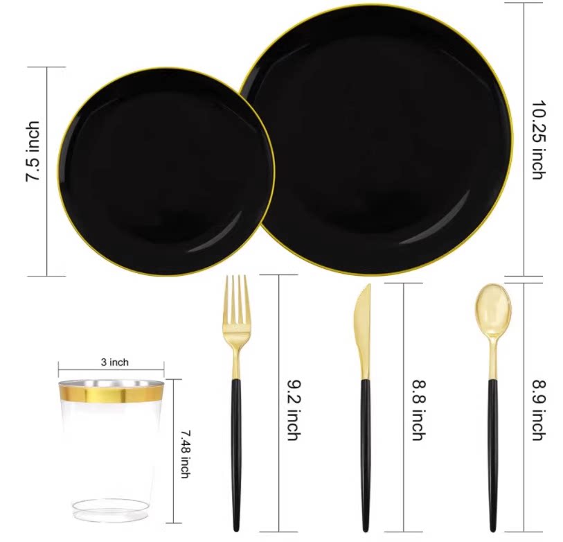 Одноразовая пластиковая черная посуда из полипропилена, белая обеденная тарелка, бокал, комплект